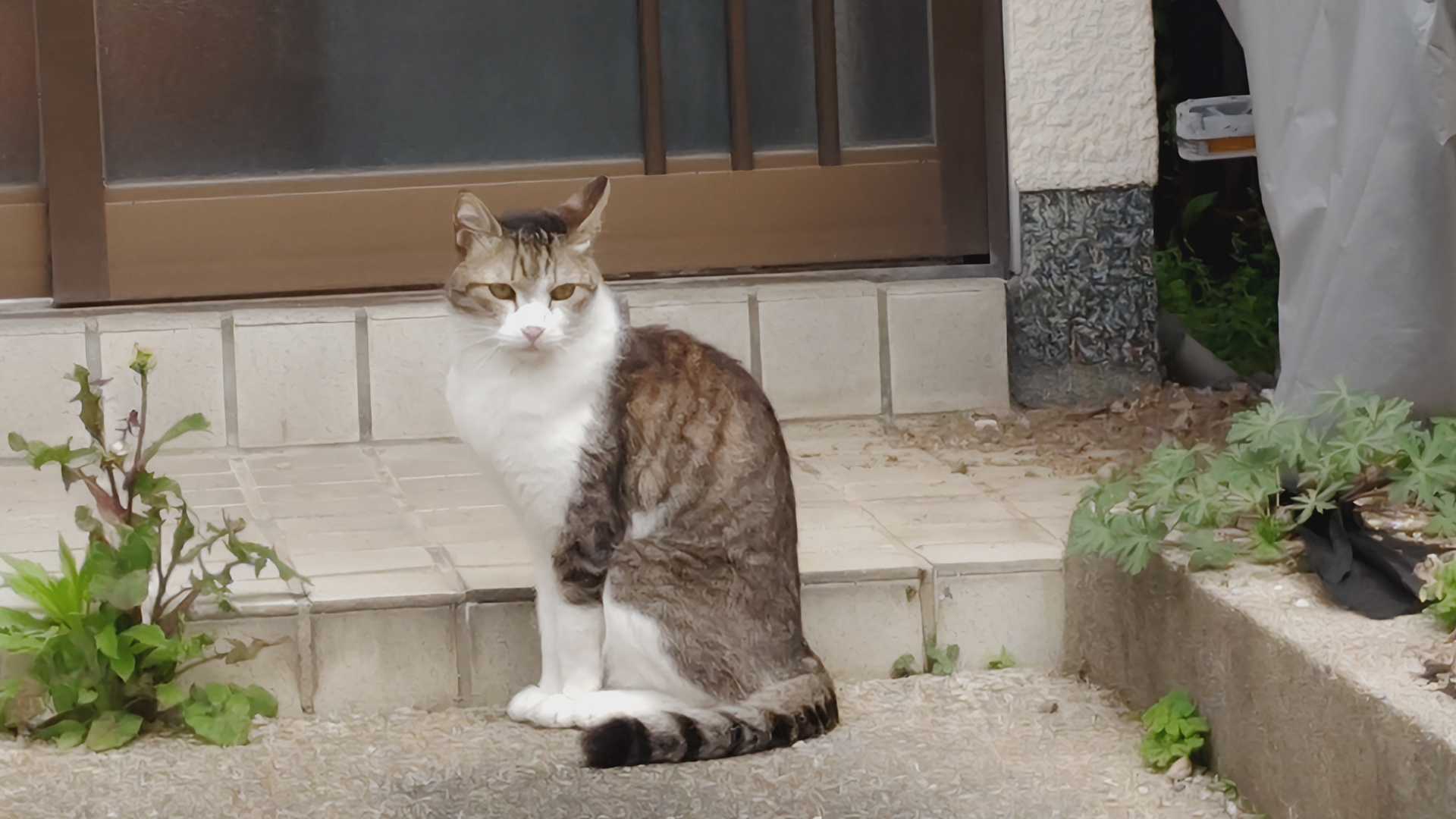 ねこちゃんいたので、追っかけた。逃げられたけど、ちょこんと