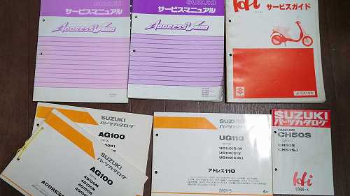 サービスマニュアルなど、こちらを、お渡ししておきました。あと、外したキャブやジェットのセットなど