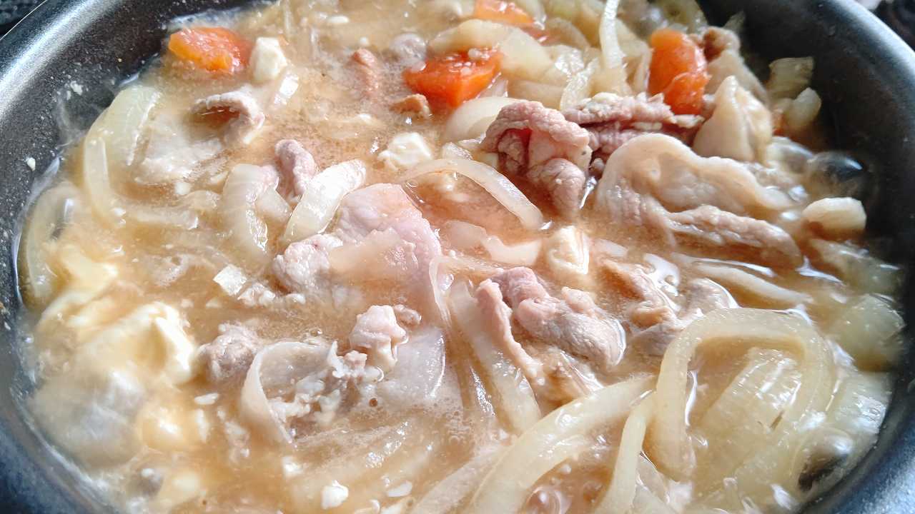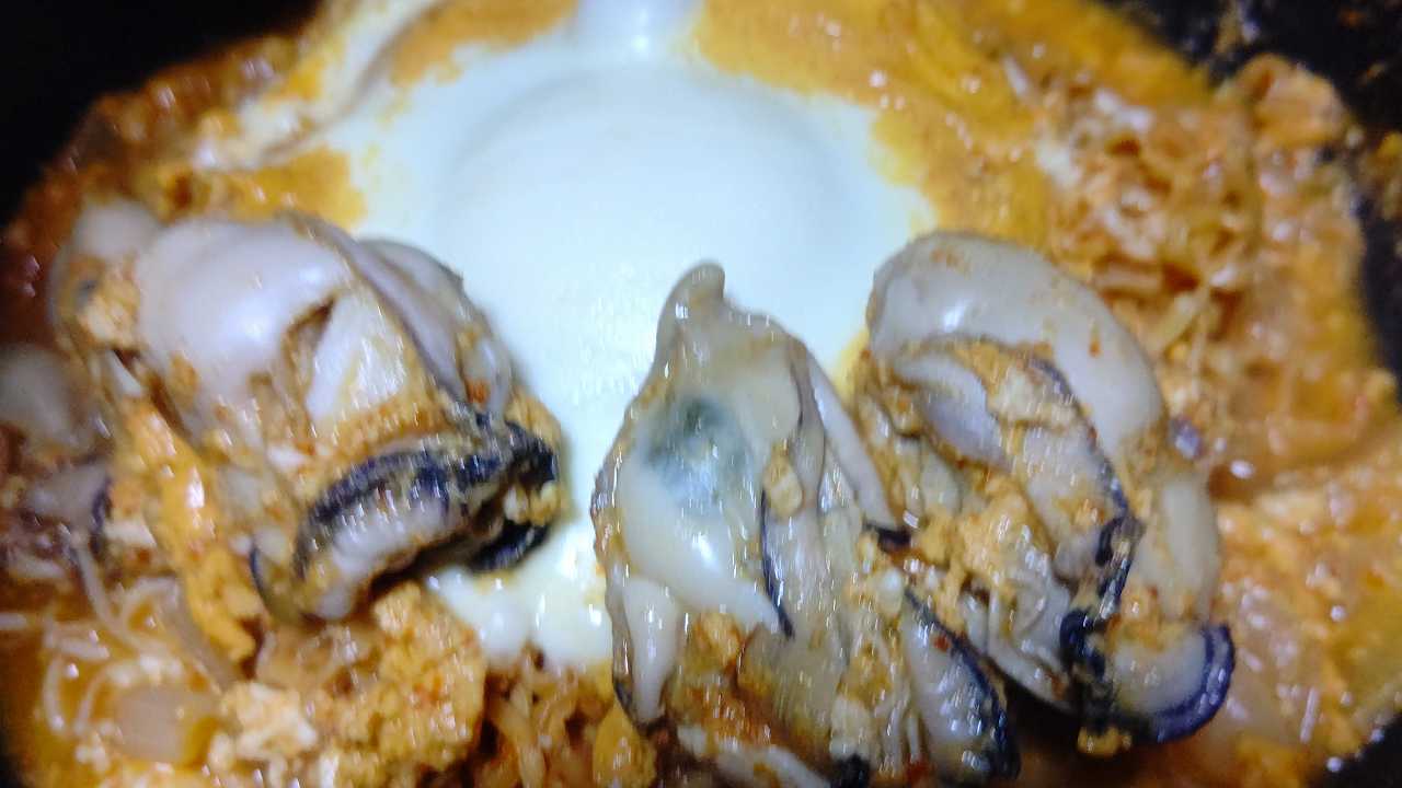 昨晩の、牡蠣スンドゥブの残りに、栄養付けるために、牛乳たして。。。