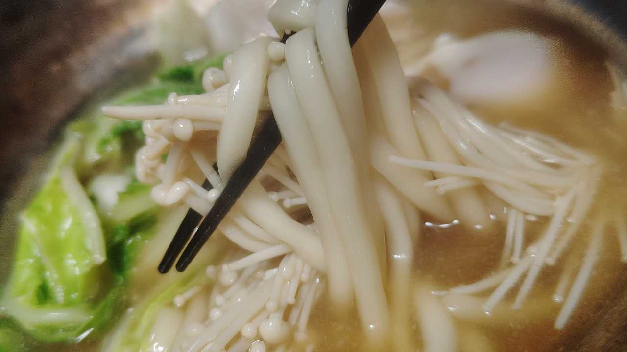 湯豆腐に、エノキと海老餃子入れて、いただきました。。。