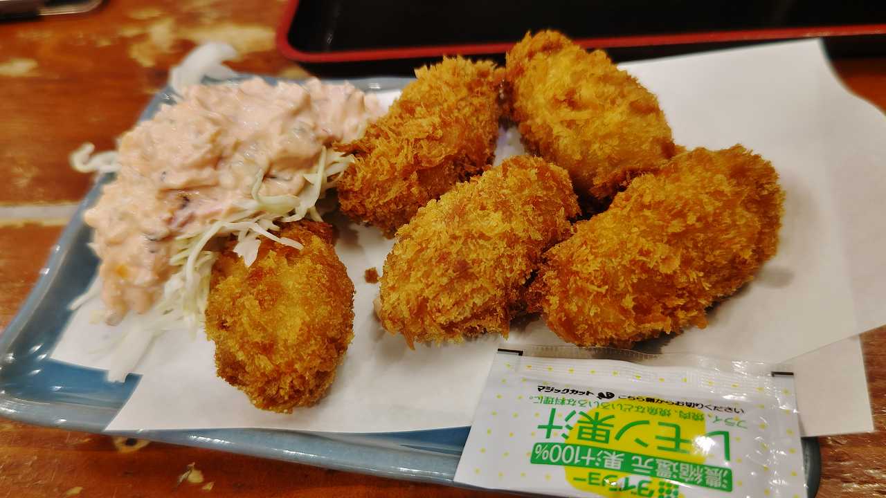 カキフライ。。。ちょっと牡蠣はさみしいが。。。