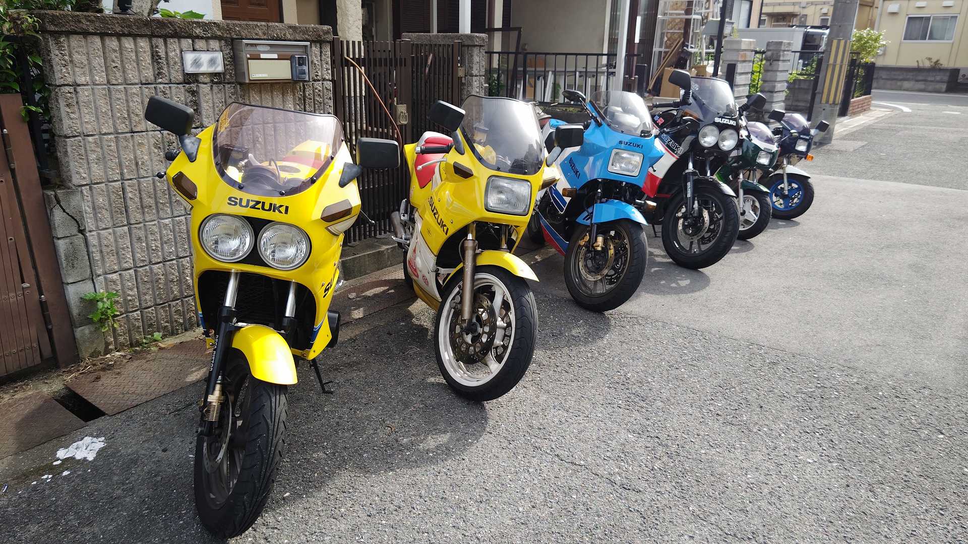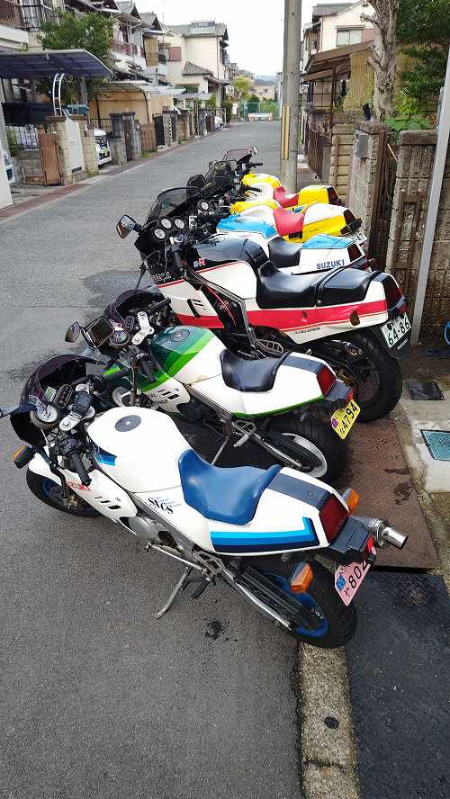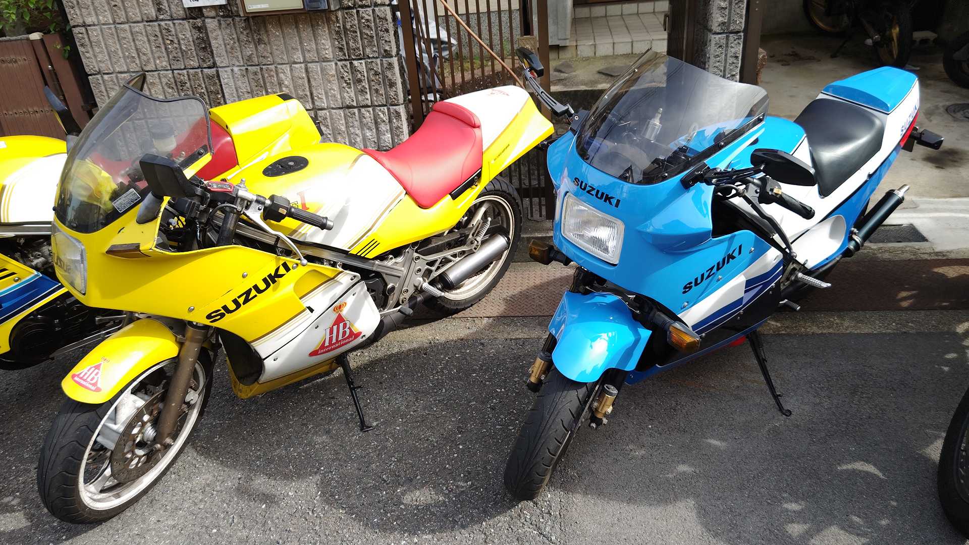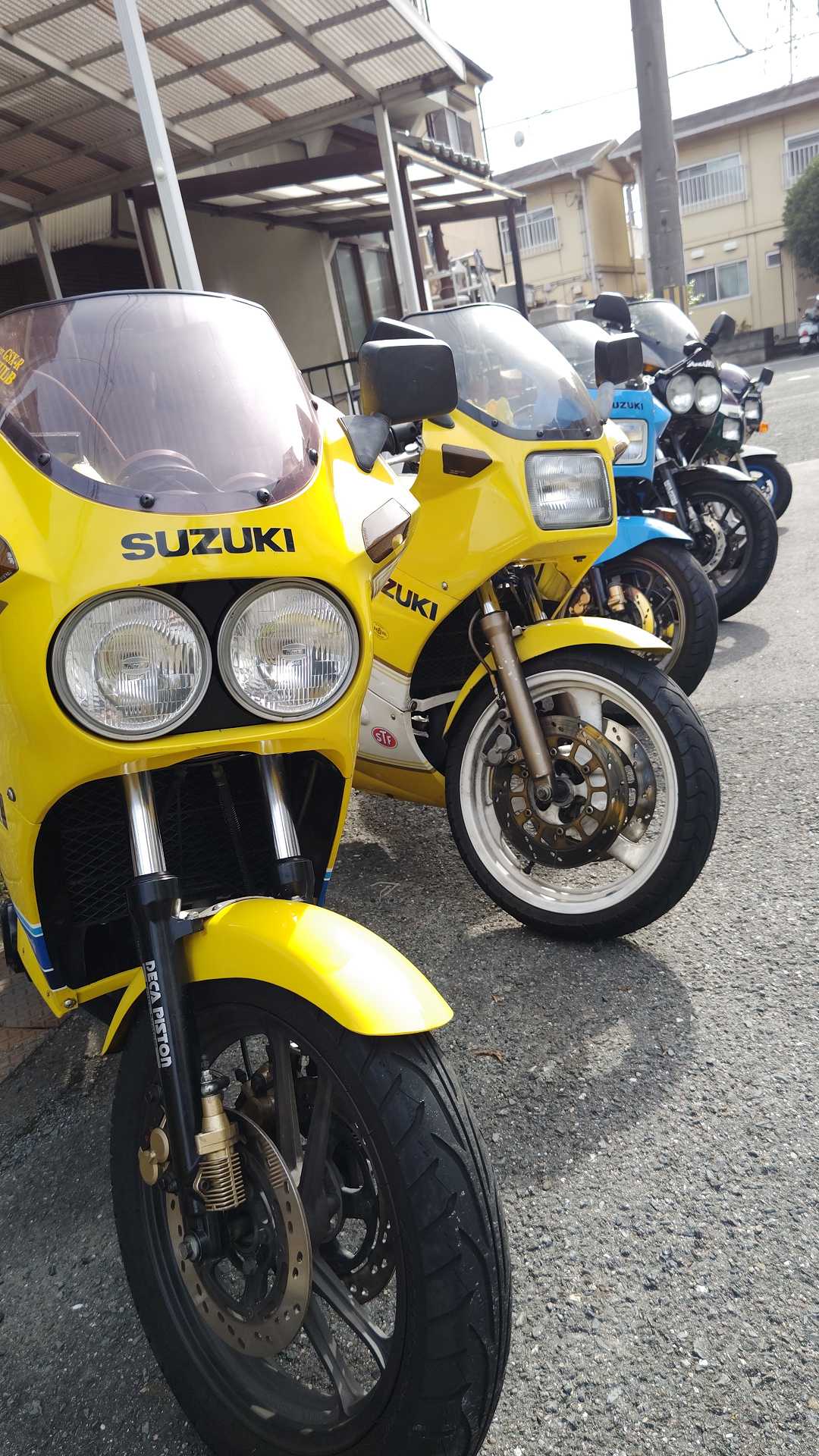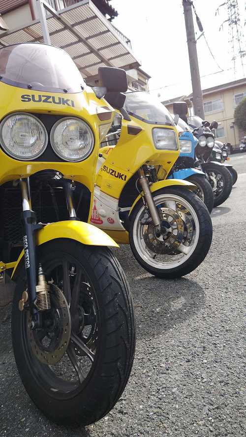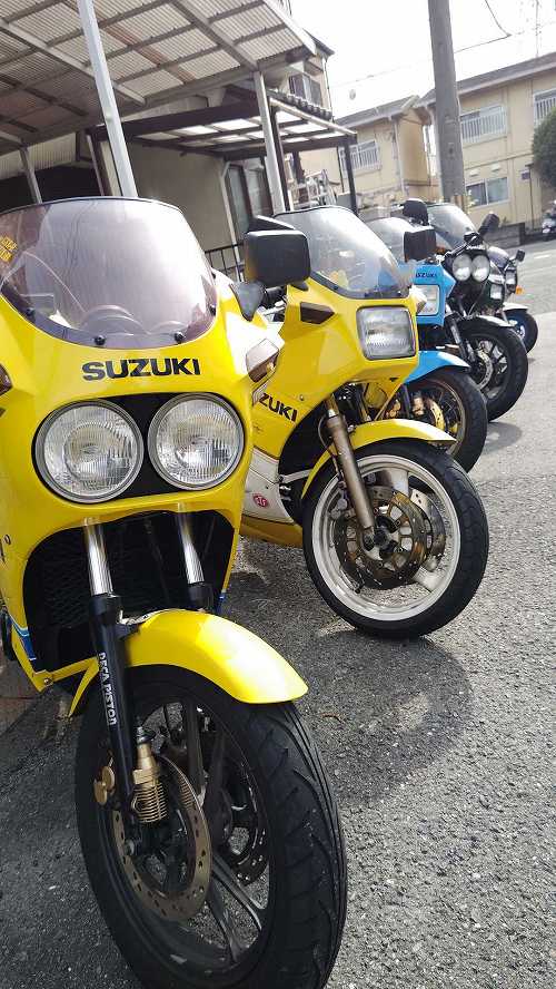前に、HB Γのお披露目の時、同じように、お仲間のΓとGSX-Rを並べた時を思い出します。