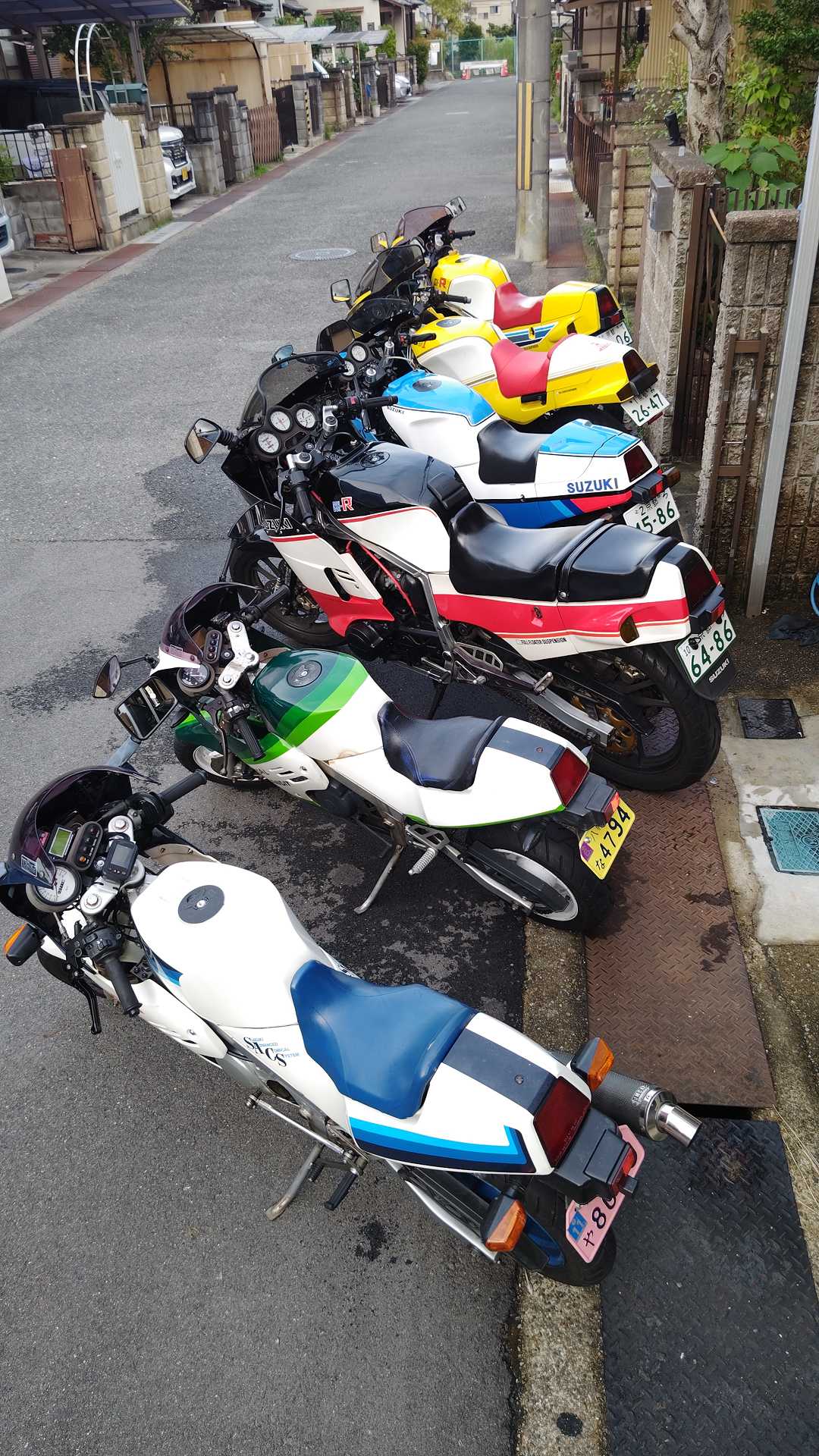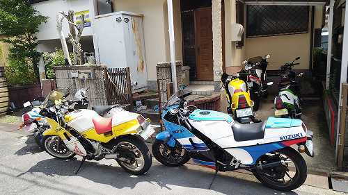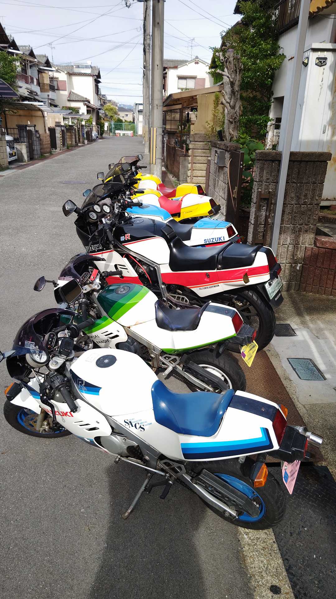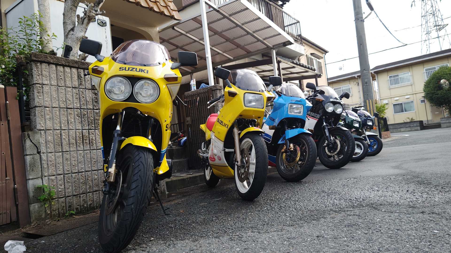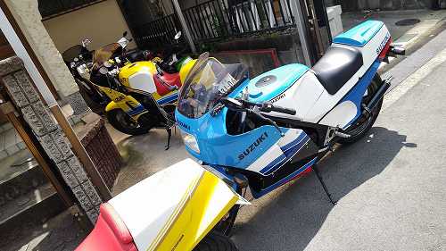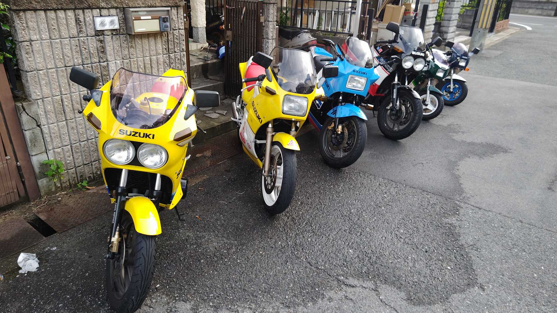 前に、HB Γのお披露目の時、同じように、お仲間のΓとGSX-Rを並べた時を思い出します。