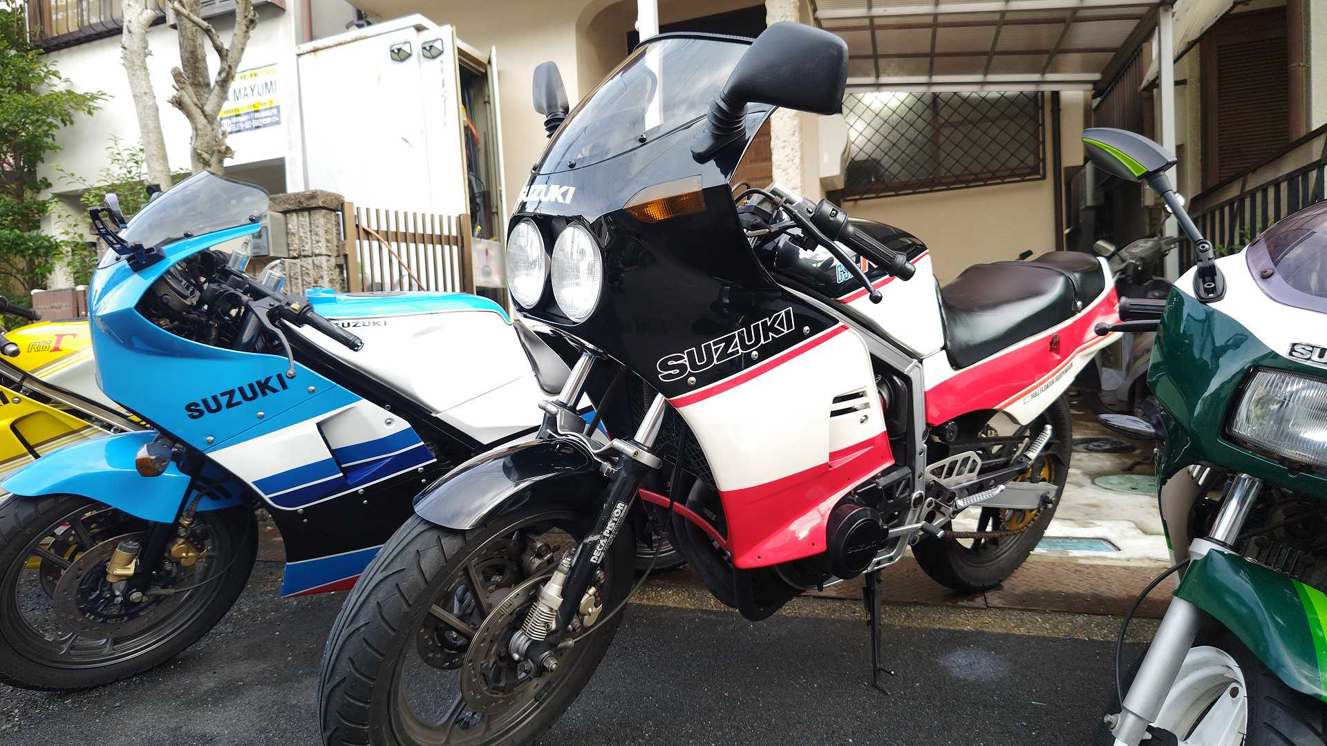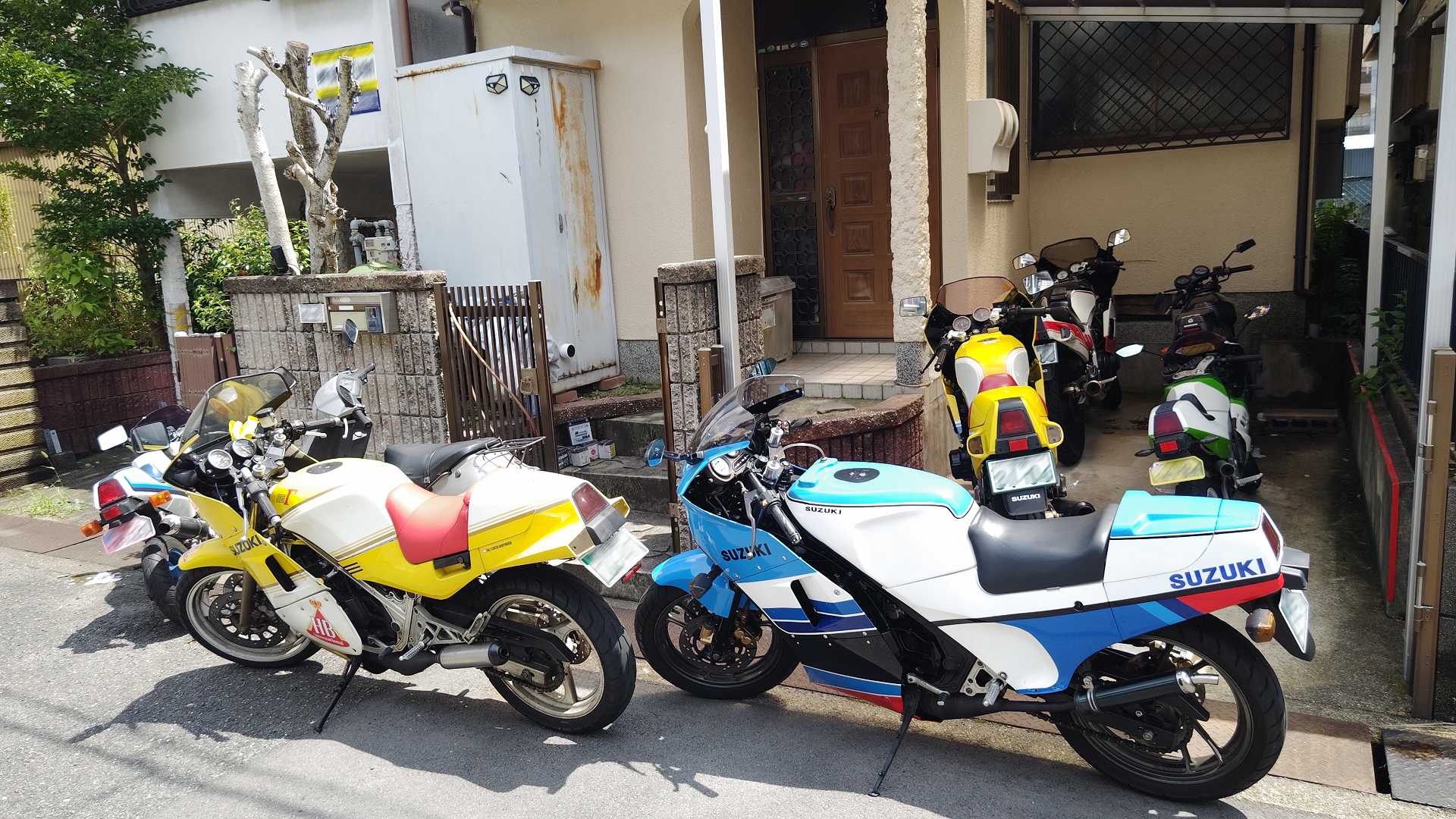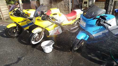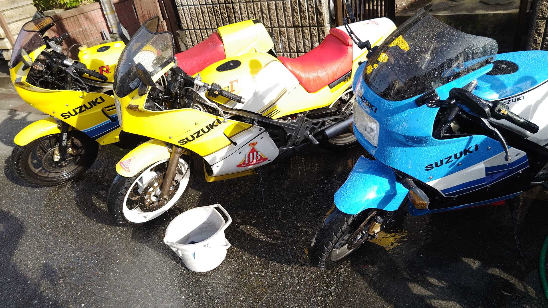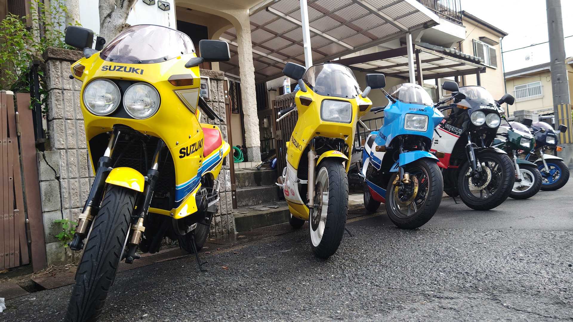 前に、HB Γのお披露目の時、同じように、お仲間のΓとGSX-Rを並べた時を思い出します。