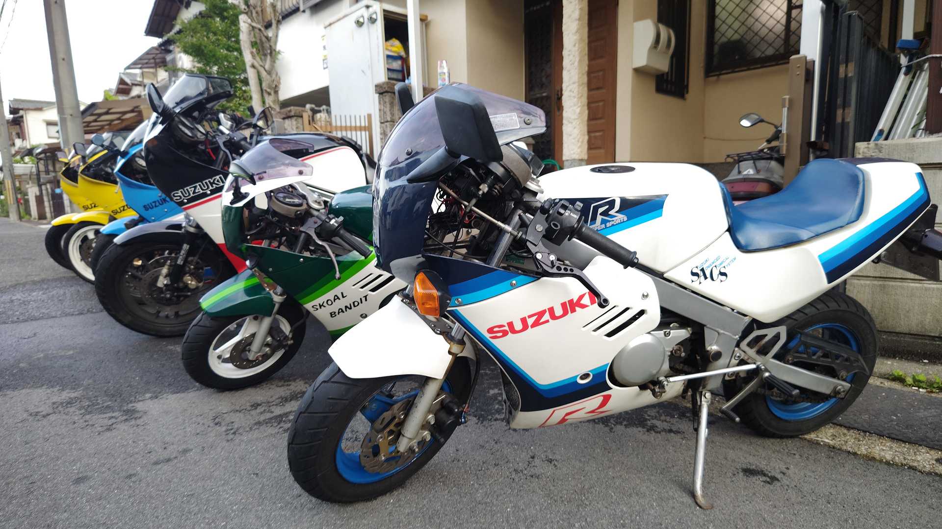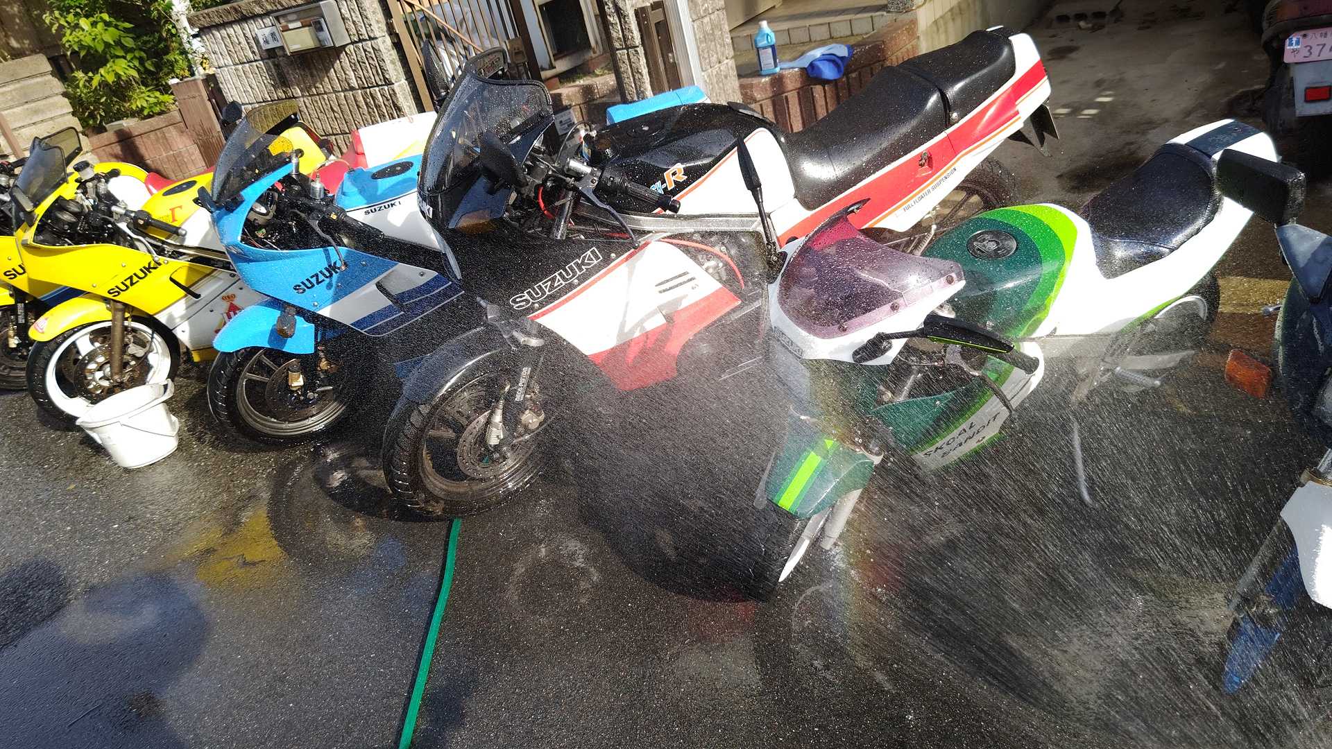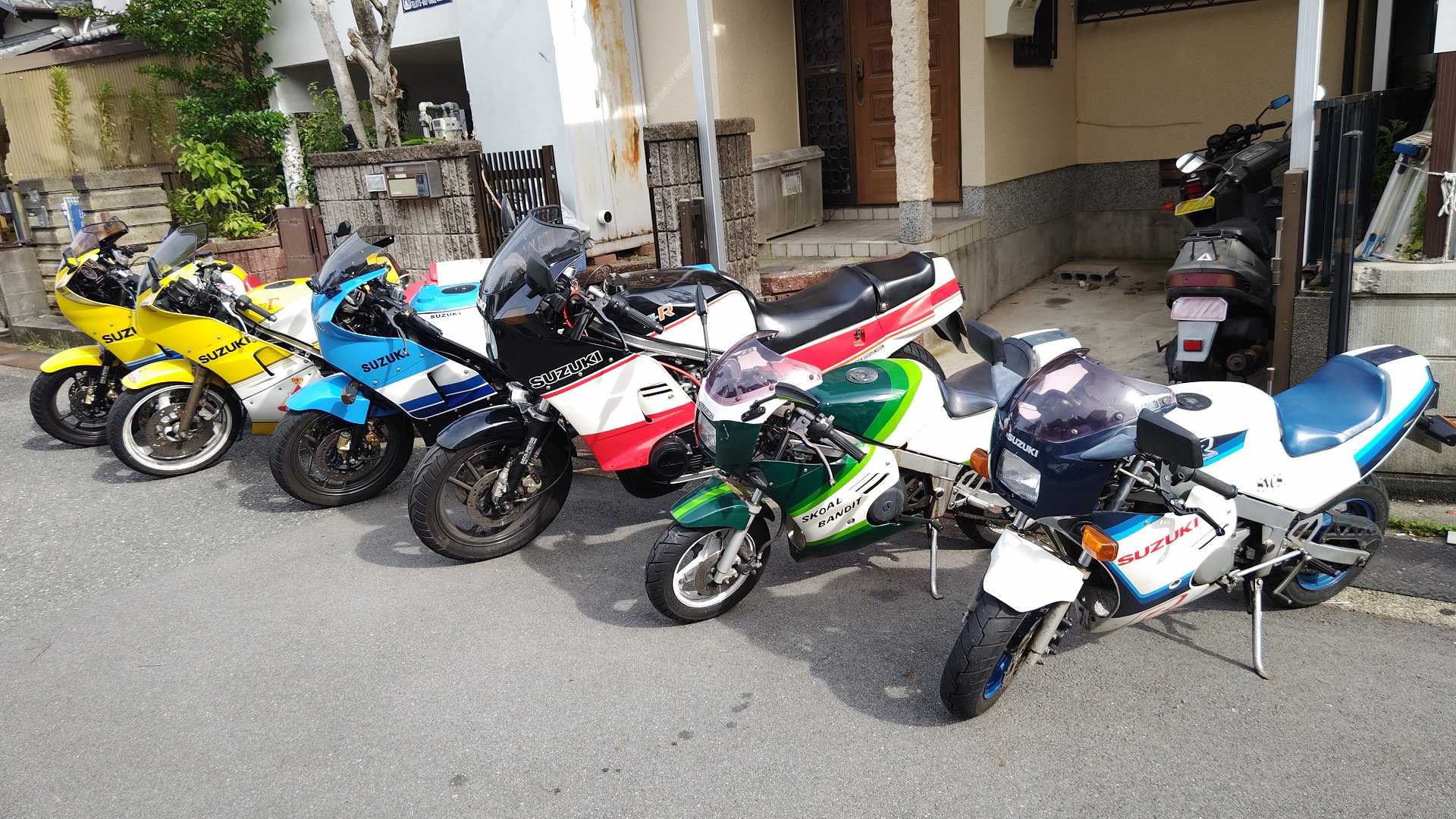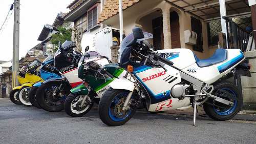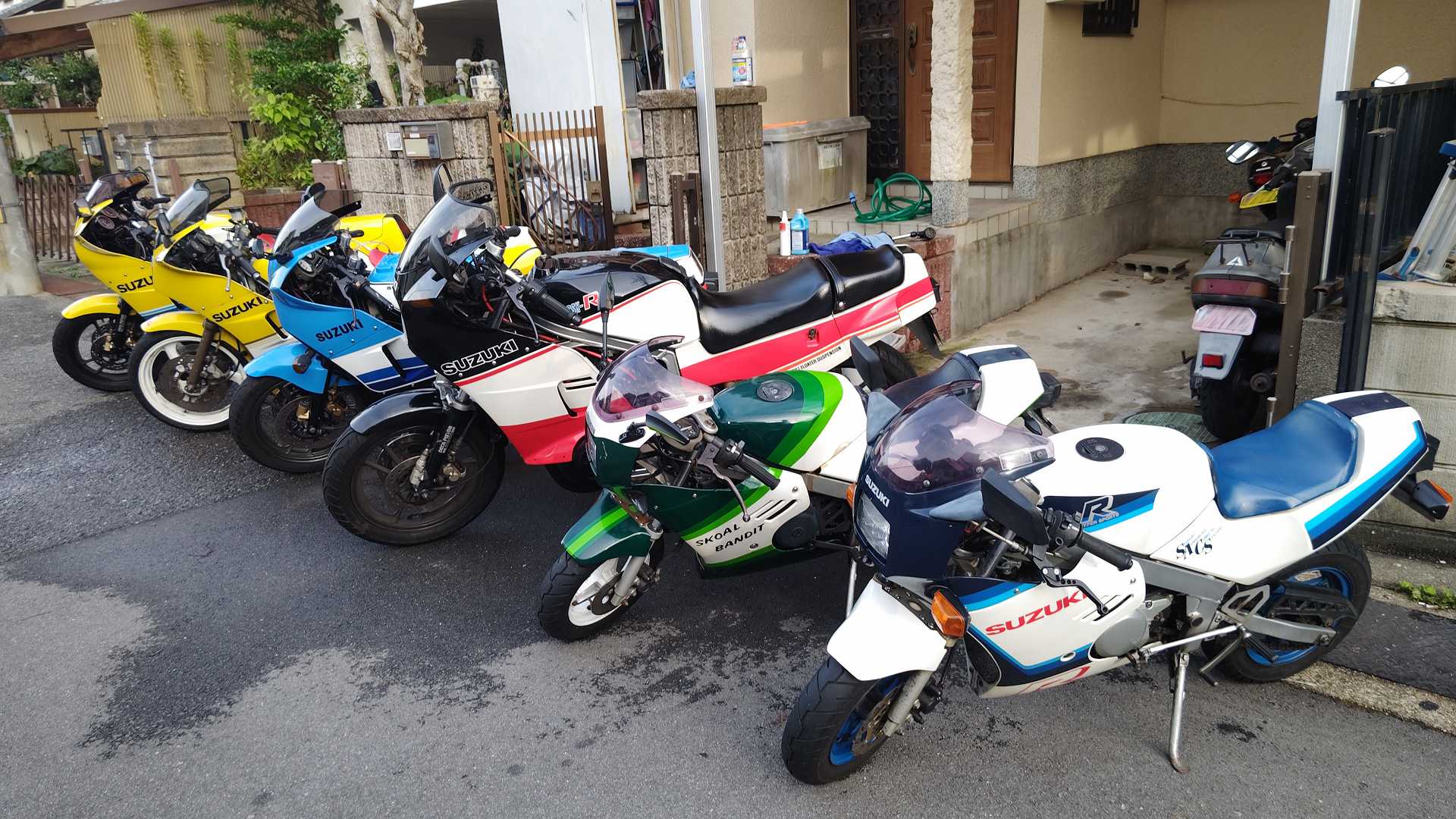 前に、HB Γのお披露目の時、同じように、お仲間のΓとGSX-Rを並べた時を思い出します。
