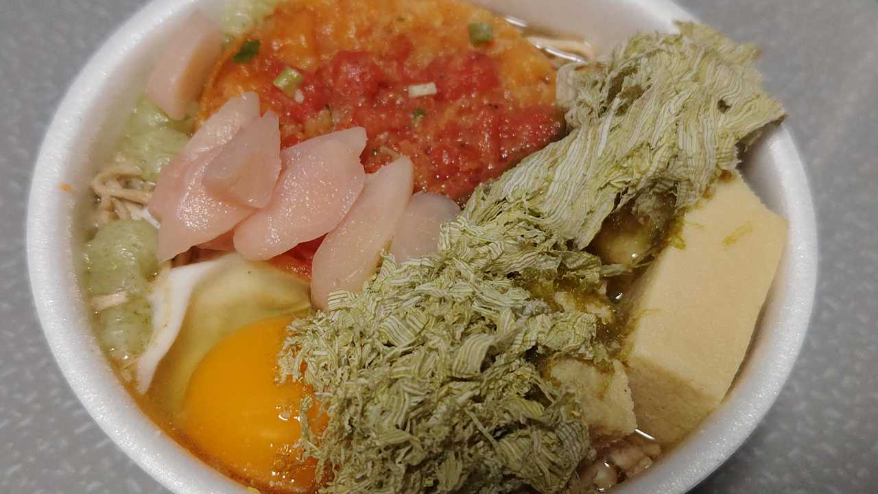 高野豆腐と、玉子と、とろろ昆布と、岩下の新生姜