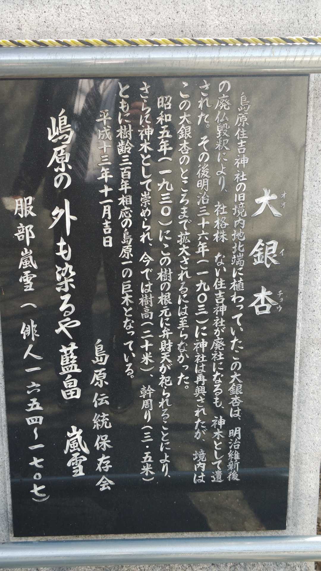 島原住吉神社の北側に回ったところには大きなイチョウの木がそびえています。