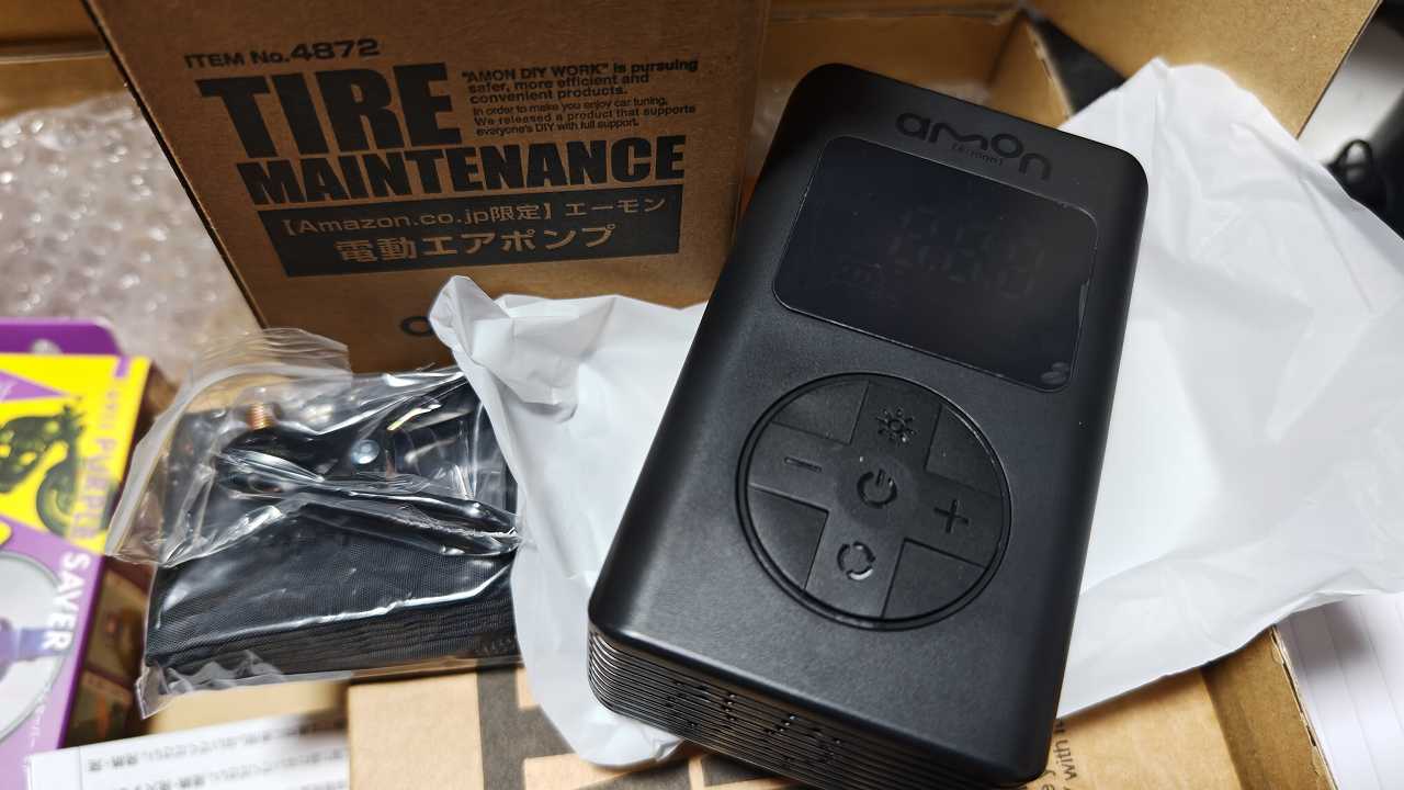 エーモン 車/バイク/自転車/ボールの空気入れがコンパクトな1台に 軽量 充填スピードが速い 電動エアーポンプ USB充電式 自動停止機能 空気圧設定メモリー機能 PSE適合品【Amazon.co.jp限定】 エーモン(amon) 電動エアポンプ 4872
