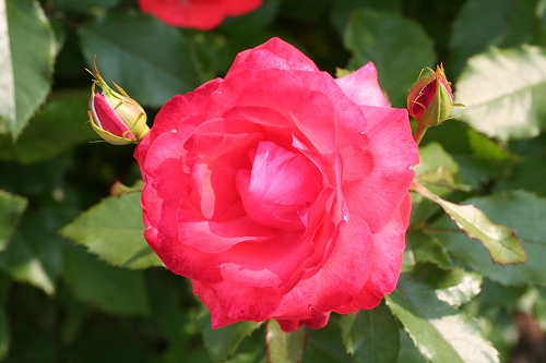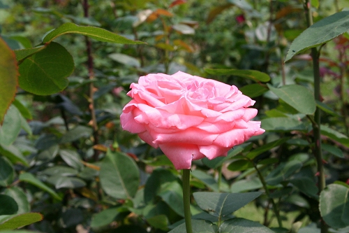 マリアカラス HT、1965年作出、フランス・メイアン。 花色はローズ ピンクで、半剣弁高芯咲き、花径は10~13cm、四季 咲き性。 香りは非常に強く、甘い香りがする。 1968年、AARS賞を受賞。 花の名前は、往年のオペ ラ歌手・マリア・カラス(1923~1977)に因んでいるこ とはいうまでもない。 マリアカラスへジャンプ