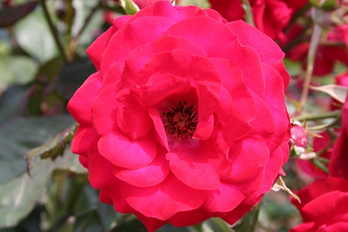 マリアンデール FL、1985年作出、ドイツ・コルデス。 花色は 真紅で、八重カップ咲き、中輪、四季咲き性、微香。 マリアンデールは、リヒャルト・シュトラウスのオペ ラ「バラの騎士」に登場する、元帥・侯爵夫人の小間 使いとか。マリアンデールへジャンプ