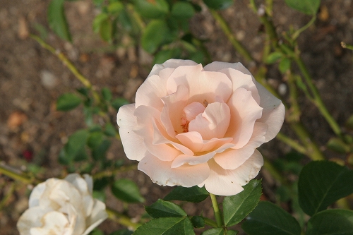 マチルダ FL(フロリバンダ・ローズ)、1988年作出、フランス・ メイアン。 花色は淡いクリーム色に桃色のぼかしで、 何とも可愛い花を咲かせる。 花径は5~7cmの中 輪で、丸弁平咲き又は半八重盃状咲き。 四季咲き 性、微香。 樹高は0.7m、横張り性、強健種。 Matilda はゲルマン系由来の女性名。 マチルダへジャンプ