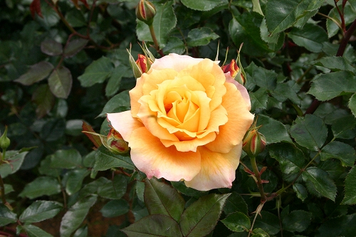 マンヨウ(万葉) FL、1988年京成バラ園作出。 中輪系としては、 大きめの輝くようなオレンジ色の花を咲かせる。 波状弁平咲き、花径は10cm位。 樹高90cm、 横張り性。 微香。 強健で耐病性に優れ、オールドローズのように波 うつ花びらが優美である。 万葉の時代をイメージ したとか。マンヨウ(万葉)へジャンプ