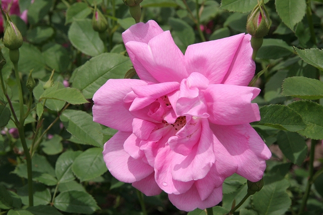 マレシャル・ダブスト OLD.R(オールド・ローズ)、1853年、作出国フランス・ Robert。 花色はモーヴピンク(藤色がかったピンク)で、 多弁八重咲き、中輪、一季咲き性、強香。 樹高1.5~2m、木立性。 作出後150年経っても健在とは、 驚きである。 オールド・ローズ独特の雰囲気がある。 マレシャル・ダブストへジャンプ