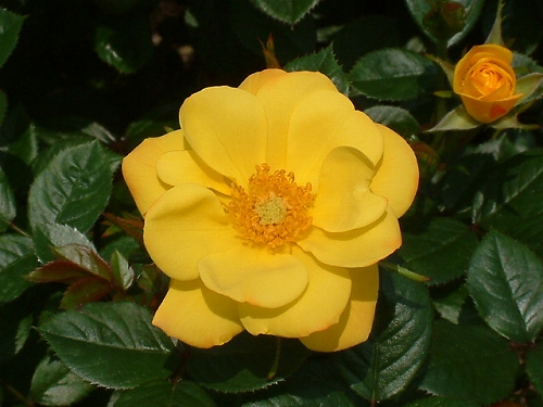 ミスターJCB FL、1993年作出国イギリス・Dickson。 花色は 黄で、半八重咲き、花径は4cm位と小輪、四季咲き性。 花の雰囲気が「キンシバイ」によく似ている。 もっとも、 キンシバイの花弁数は5枚であるが。ミスターJCB へジャンプ