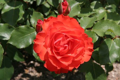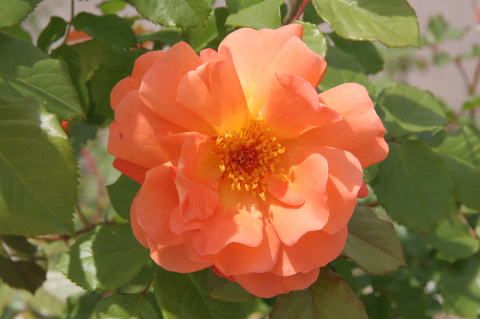 3月 9日(日)・名古屋 晴れ・3℃~15℃ウェスターランド S(シュラブ・ローズ)、1969年作出、ドイツ・コルデス。鮮 やかな蛍光系のオレンジ色を帯び、開花につれて色彩がサーモン・ オレンジに変化してきて、一つ一つの色合いが微妙に違っていて、 そのハーモニーが素晴らしい。 波状弁咲き、花径10cm前後で 中輪、花弁数35~40枚、四季咲き性、強いフルーツ香。 寒さ、暑さに強い性質で、病害にも強い品種で、非常に育てやすい。 美しいオレンジ色は寒冷地ほど深みが出る。 逆に温暖地では少し ピンクが乗る。 樹勢が旺盛なので、冬に強剪定をすると樹高は調節でき、木バラ風 に仕立てることが出来る。 自然に伸ばして、フェンスなどに固定 して、つるバラ仕立てにすることも出来る。 花名は、北海にあるドイツ最北の町、「ヴェスターラント(Wester- land)」の英語読みだろうか。
