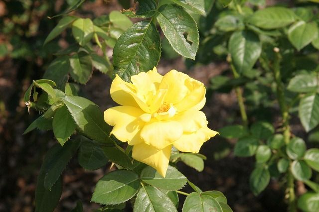 3月28日(金)・名古屋 雨後晴れ・17℃~20℃アンソニー・メイアン FL(フロリバンダ・ローズ)、1992年作出、フランス・メイアン。 花色は鮮明な黄色で、八重高芯咲き、花弁数24枚、花径は8~9cm で中輪、四季咲き性、微香。 樹高0.6~1m、半横張り性、花付きの良い品種。 花の散りが良い ので、見苦しくならない。 アンソニー(Anthony)はローマの氏族名 Antonius に由来する人名である が語源・語意は不祥。 アントワーヌ・メイアン(1884-1971)が1923年リヨン郊外にバラ園芸場を 設立、その息子フランシス・メイアン(1912-1958)は名花ピースの作出者 として有名。 現在は創業者の孫、アラン・メイアンが事業と交雑を引 き継いでいる。