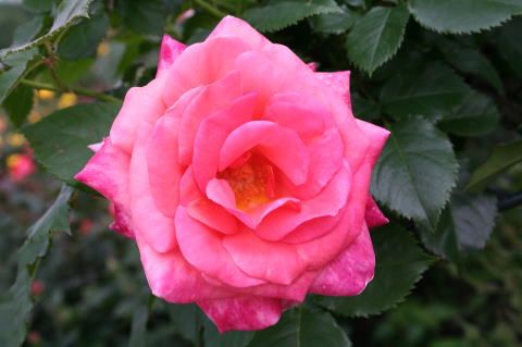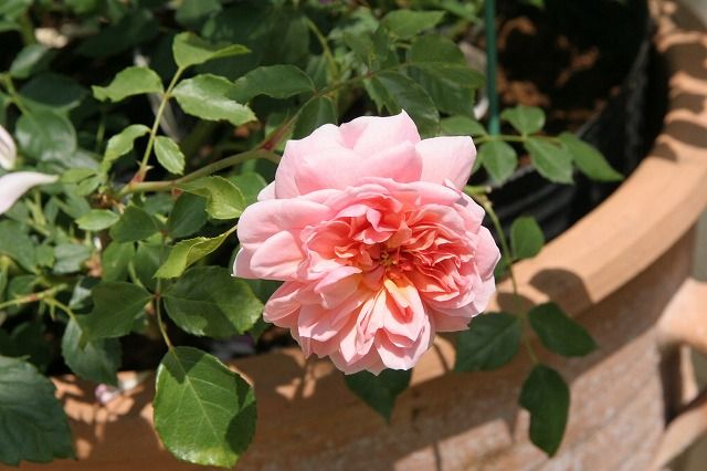 3月17日(月)・名古屋 雨後晴れ・6℃~11℃イレーヌ・ワッツ Old.R(チャイナローズ系)、1896年作出、フランス・ Guillot。 花色は少しオレンジの入ったピンクで、丸 弁抱え咲き、中輪、四季咲き性。 チャイナローズとしては耐 寒性があるが、一方で耐暑性が弱い。 フロリバンダ・ローズの名花・グルス・アン・アーヘンの枝変 わりと考えられている。 ピンク・グルス・アンアーヘンの名 で出ていることがある。 樹高は60cm程度と矮性、樹形は半横張り性。 ブッシュ状 で葉がよく茂るので、鉢植えにも適している。 春の早い時期に咲き始め、秋遅くまで咲いている。 やさしい ティーの香りがする。 ※イレーヌ・ワッツとして流通していたのは、実は「ピンク・ グルス・アン・アーヘン」であったとアメリカバラ会から近 年発表があったと云う。