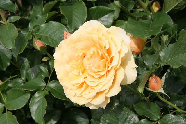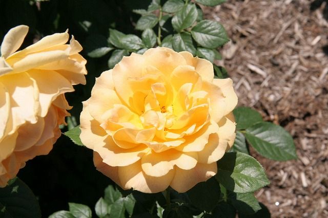 3月23日(日)・名古屋 晴れ・8℃~23℃イージー・ゴーイング FL、1999年作出、イギリス・ハークネス。 花色は 琥珀色で、丸弁高芯咲き、花径は約12cmで大輪、四季 咲き性、中香。 英国王室の風格漂う、オールド・ファッ ション・タイプのバラである。 光沢のある美しい緑の葉は、花色とのコントラストがたい へん鮮やか。全米バラ品評会で優勝したハークネス社のオ レンジ色のバラ「リビング・イージー」の枝変わり種。 イージー(簡単)という言葉は、特別な手入れをすること もなく花が咲く、という特性をあらわしている。強健な早 生種。