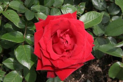 3月15日(土)・名古屋 曇り後雨・6℃~12℃イングリッド・バーグマン HT、1984年作出、デンマーク・Olesen。スエーデン 出身の大女優イングリッド・バーグマン(1915~1982) に、その没後捧げられたバラである。 20世紀を代表する10名花のひとつである。 鮮明で輝くよう な純赤色の花は弁質が厚く、剣弁高芯咲き、花径約12cmで大 輪、四季咲き性、僅かにスパイシーな香りがする。花保ちが良い、 強健種。 樹高は90~150cm程の、中位の立ち性のブッシュとなる。 3年に一度開かれる、世界バラ協会(World Fedration of Roses)の 会議で、2000年(第10回)に「名声の間」(Hall of Fame) への殿堂入りを果たした。