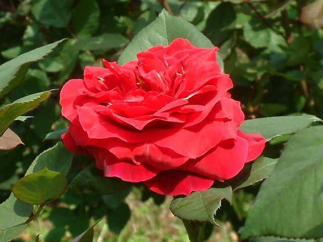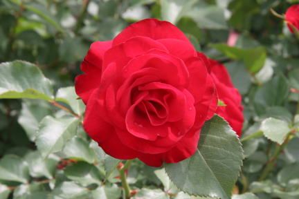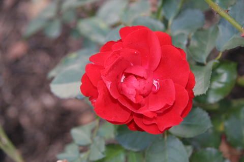 3月 6日(木)・名古屋 晴れ時々曇り・7℃~13℃ウタゲ HT、1979年作出、京成バラ園(鈴木省三氏)。 花色は鮮や かな紅色で、裏弁はやや淡い。 半剣弁高芯咲き、花径13cmと 大輪、四季咲き性、微香。 耐暑・耐寒性をもつ強健種で、大きな外弁がゆったりと優雅に開 く。 多花性で、褪色しないのが嬉しい。 樹形は半直立性の大株になり、葉は厚みのある半照り葉。 濃い赤色をしたバラは,遠くから見ると美しいが,近くで見ると 花弁の中にシミがついていたりすることが多い。 しかし、この ウタゲは撮影に困ったことはない。 花名「ウタゲ(宴)」が、まさにぴったりと云った感じである。
