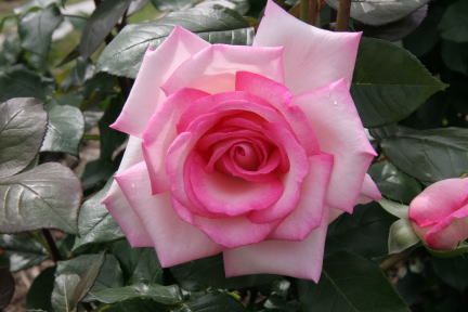3月 1日(土)・名古屋 晴れ時々曇り・4℃~20℃エターナリー HT、1997年作出、広島バラ園。 花色は濃いピンク で、裏弁が淡いピンクなので、ツートンカラーとなってい る。 半剣弁高芯咲き、四季咲き性、花径は12cmで大 輪。 チャップリン作曲のライムライト「エターナリー」が有名 であるが、直訳すると「永遠に」であろうか。