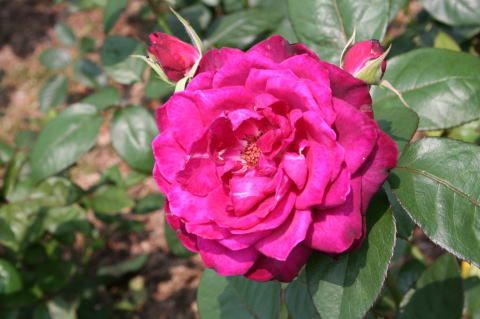 3月 5日(水)・名古屋 雨後晴れ・6℃~11℃ウララ FL、1995年作出、京成バラ園。 花色は艶のある濃 いショッキング・ローズピンクで、丸弁咲き、花弁数30 ~35枚、花径8~10cmと中輪、四季咲き性、多花性、 微香。 初夏から晩秋まで、途切れることなく咲き続け、花弁がし っかりしていて、花保ちが良い。 樹高は50~90cmで、半横張り性。 株は強健で、 葉は厚みがあり耐病性に優れている。 1995年、 JRC(日本バラ会)金賞を受賞。 花名「麗」は、華麗な雰囲気を醸し出すところから付けら れたものであろう。