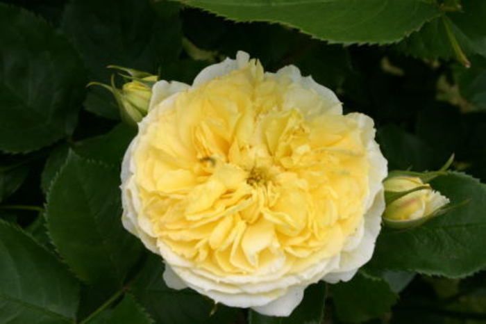 3月21日(金)・名古屋 晴れ・2℃~18℃イエロー・ボタン En.R、1975年作出、イギリス・オースチン。 淡黄色、 フルーツ香、中輪、ロゼット咲き。 開花期間が長い。樹高 は約1m。 摘みたてのリンゴやラズベリーを思わせる香りで、イングリ ッシュローズの香りとしては最も少ないグループ。他の香り とはかなり異なる、鮮明で酔わせるような香りで、バラの香 りを楽しむのに驚きという要素をプラスする意味ではとても 効果的。