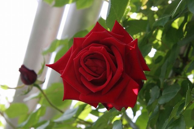 3月30日(日)・名古屋 晴れ時々曇り・7℃~13℃アンクル・ウオーター CL(クライミング・ローズ)、1963年作出、イギリス・マグレディ。 学名はロサ・イブリダ。 花色は緋紅色で、花弁の表面がビロード光沢を 持っている。 剣弁高芯咲き、花径は約13cmで大輪、四季咲き性、花 付きは旺盛、花保ちもよく、香りは控えめなティー香。 株はたいへん丈夫で大型になり、シュートが5m以上も伸びる樹勢の強い 品種。 サミユエル・マグレディ&サン社は北アイルランドで1880年に創業し たが、初代はパラの交雑は行わなかった。 4代目のサミュエル・ダラー ・M.(1932~ )は、若くして死んだ父の死後、圃場(ほじょう) を守っていたウォルター・I・ジョンストン(アンクル・ウォルター)か ら経営を引き継ぎ、彼が育種したバラに叔父の名を付けた。彼は1972 年にニュージーランドに移住し交雑活動を続けている。