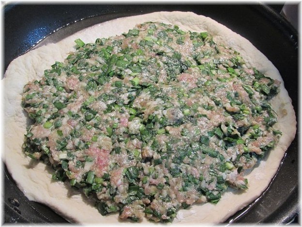 上に餃子の具を広げて乗せました