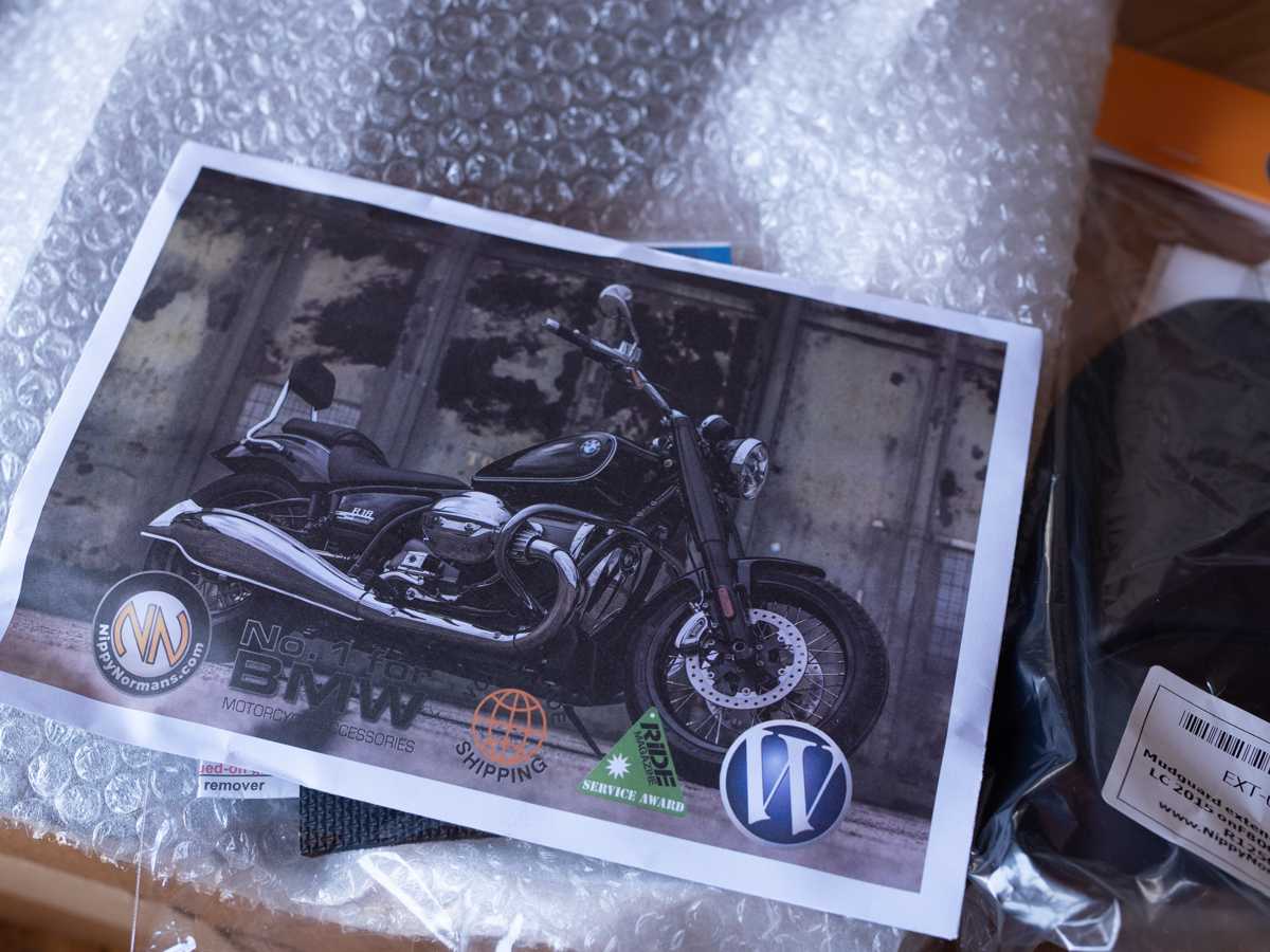 本物を買いたいがアマゾンでの価格に納得がいかず検索を重ねると、イギリスの NippyNorman という EC サイトで R1250R 用の MudSling を購入した旨の記事を見つけることになる。