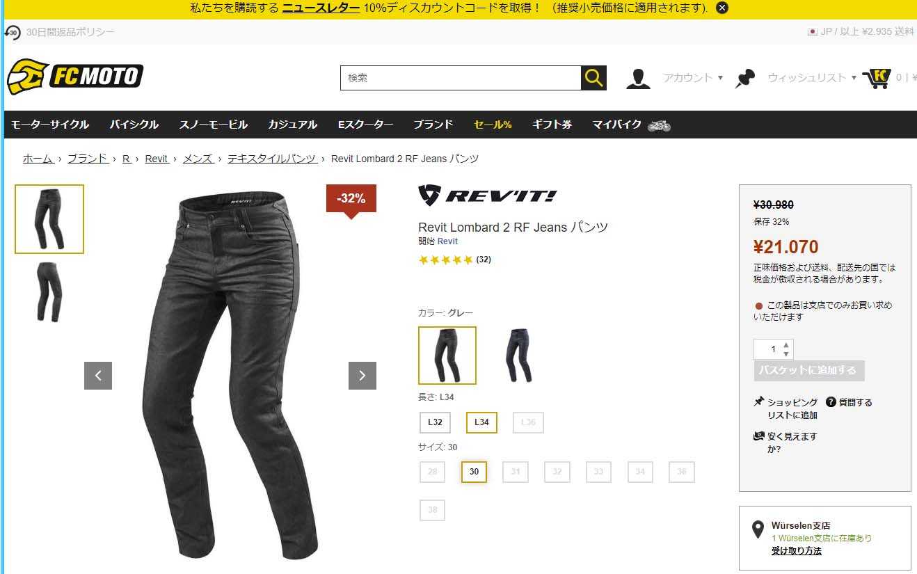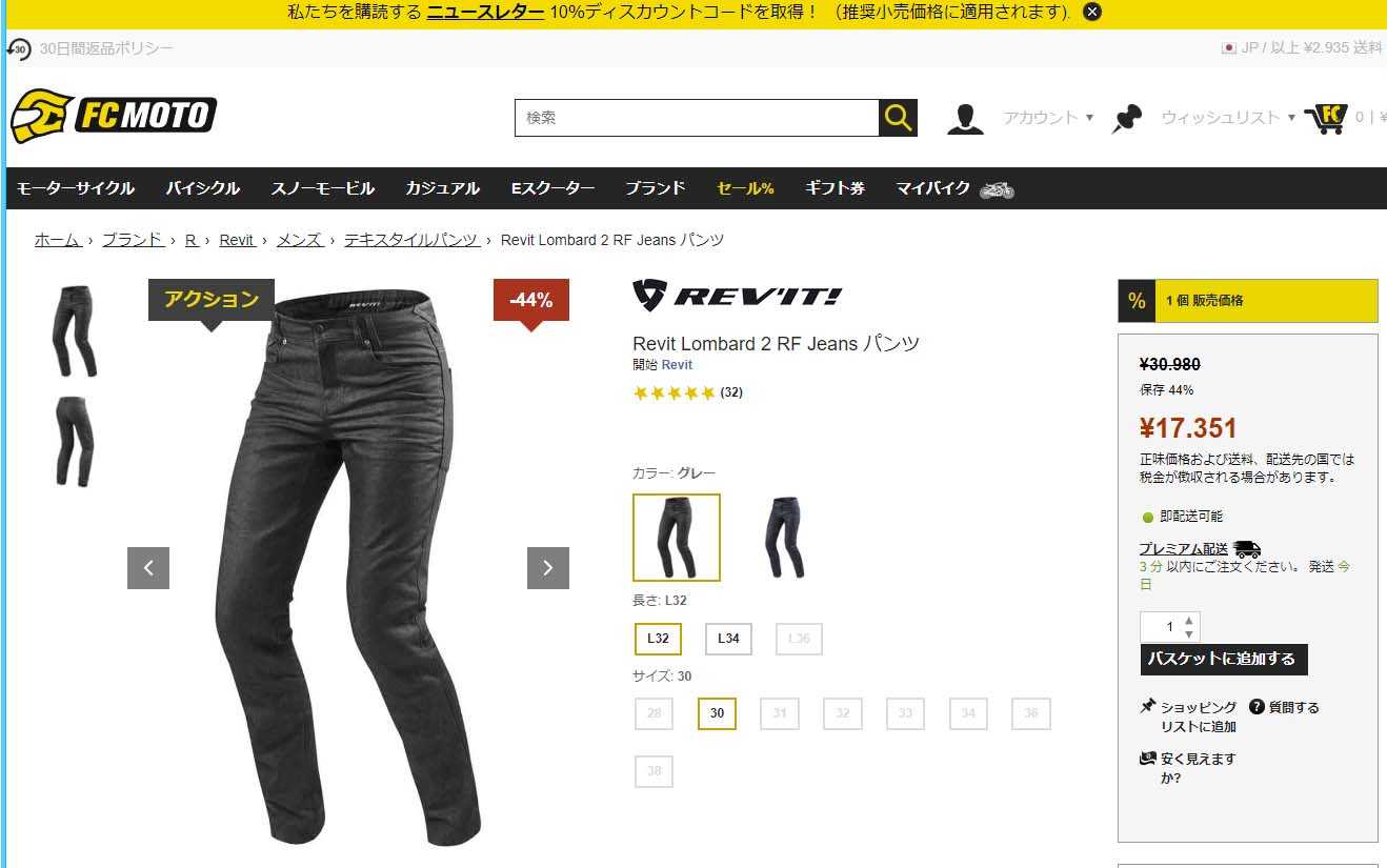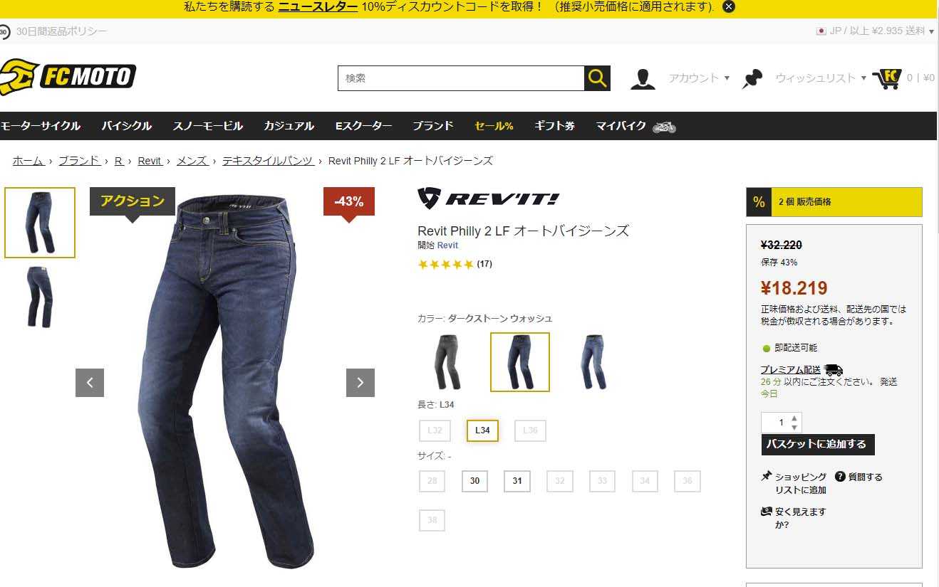 ところで、REV'IT のライディング・ジーンズのいくつかがバージョン・アップしたらしく、旧製品が 40% 以上も割引になっている。割引にも弱い。