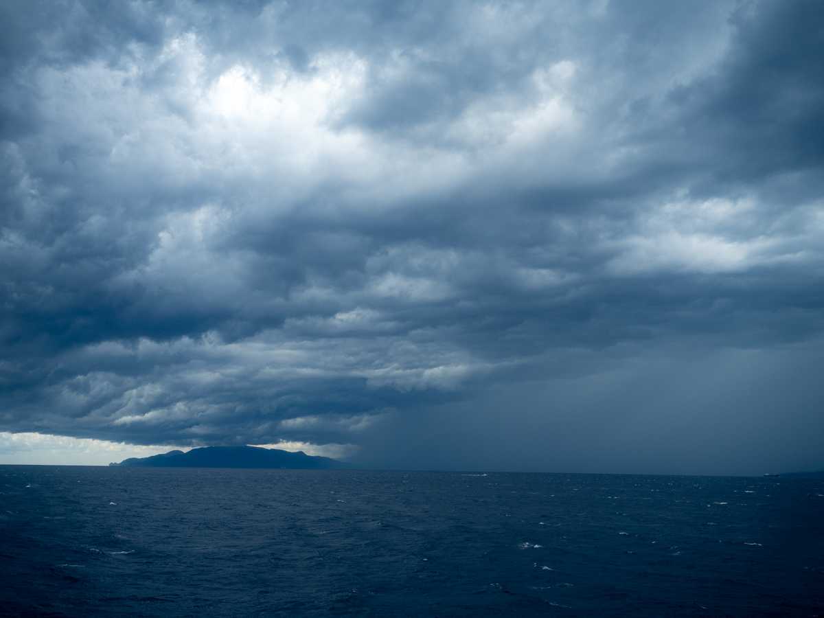 乗船時の好天は間もなく荒天に変わった。雨具を着けての下船なのだろうか。頭が重い。