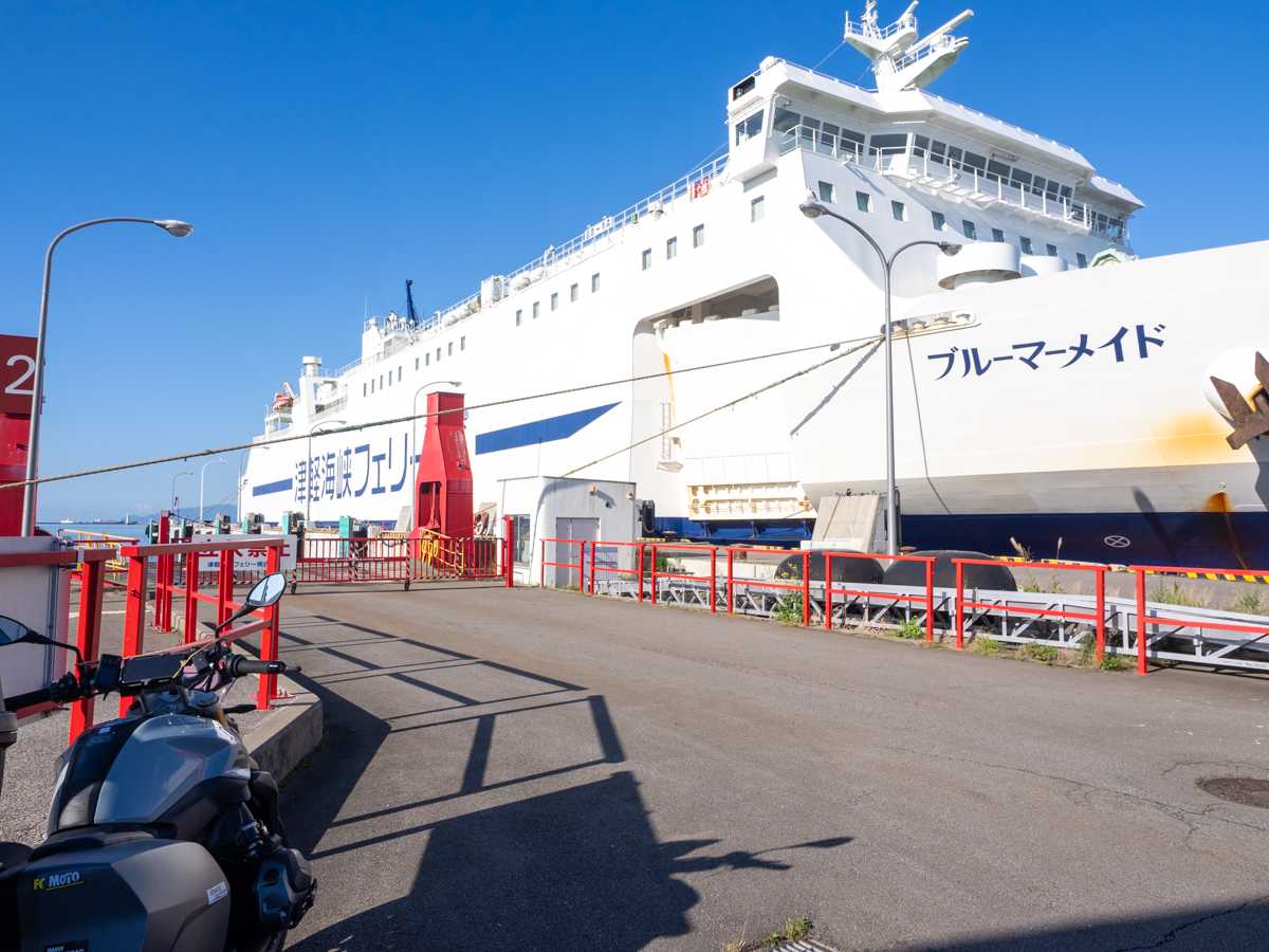 ​​​  ここにバイクを置くように指示された。乗るのはこの船ではない。私はてっきりこの船だと思い込んでいたが、よく見れば 2 というゲートから乗船するのである。