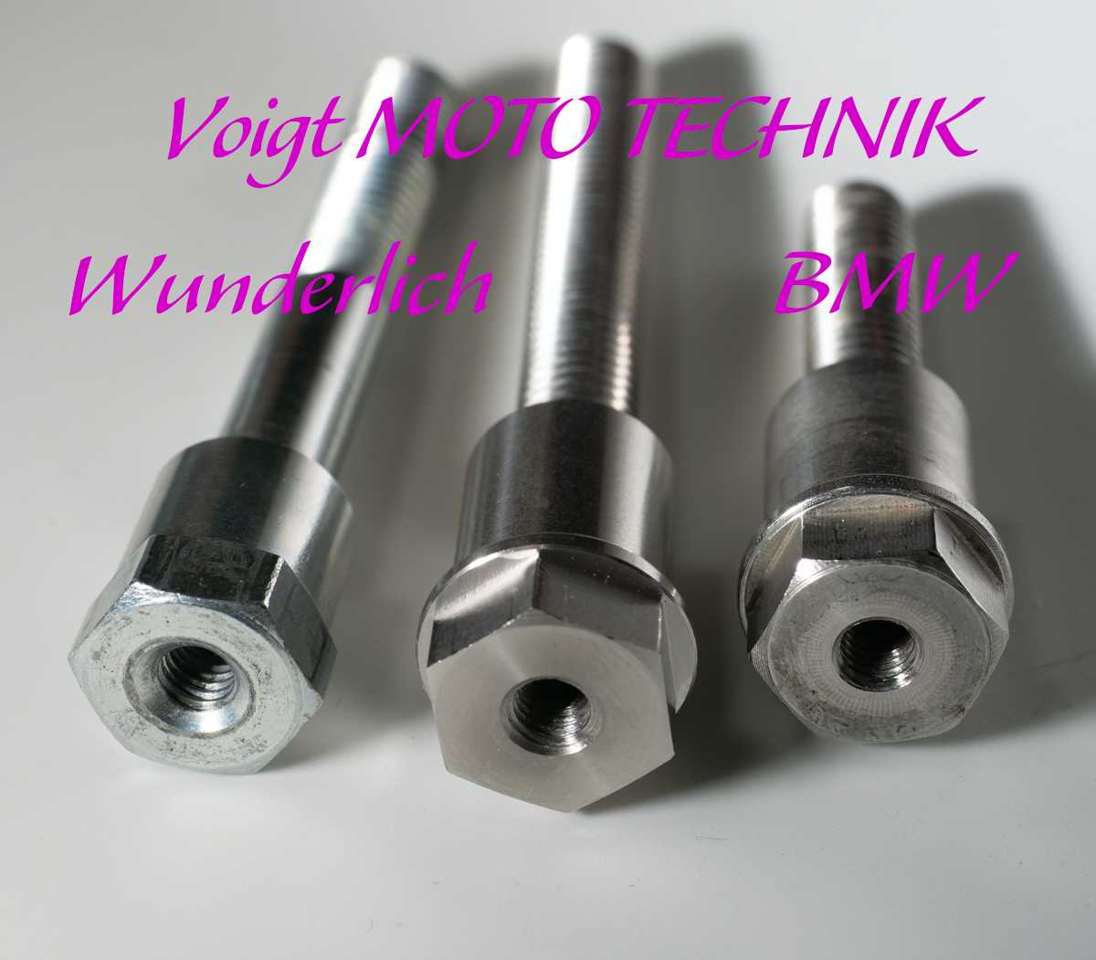 真ん中のボルトが、VOIGT MOTO TECHNIK のボルト、右がバイクに着いていたボルト、左がワンダーリッヒのボルトである。