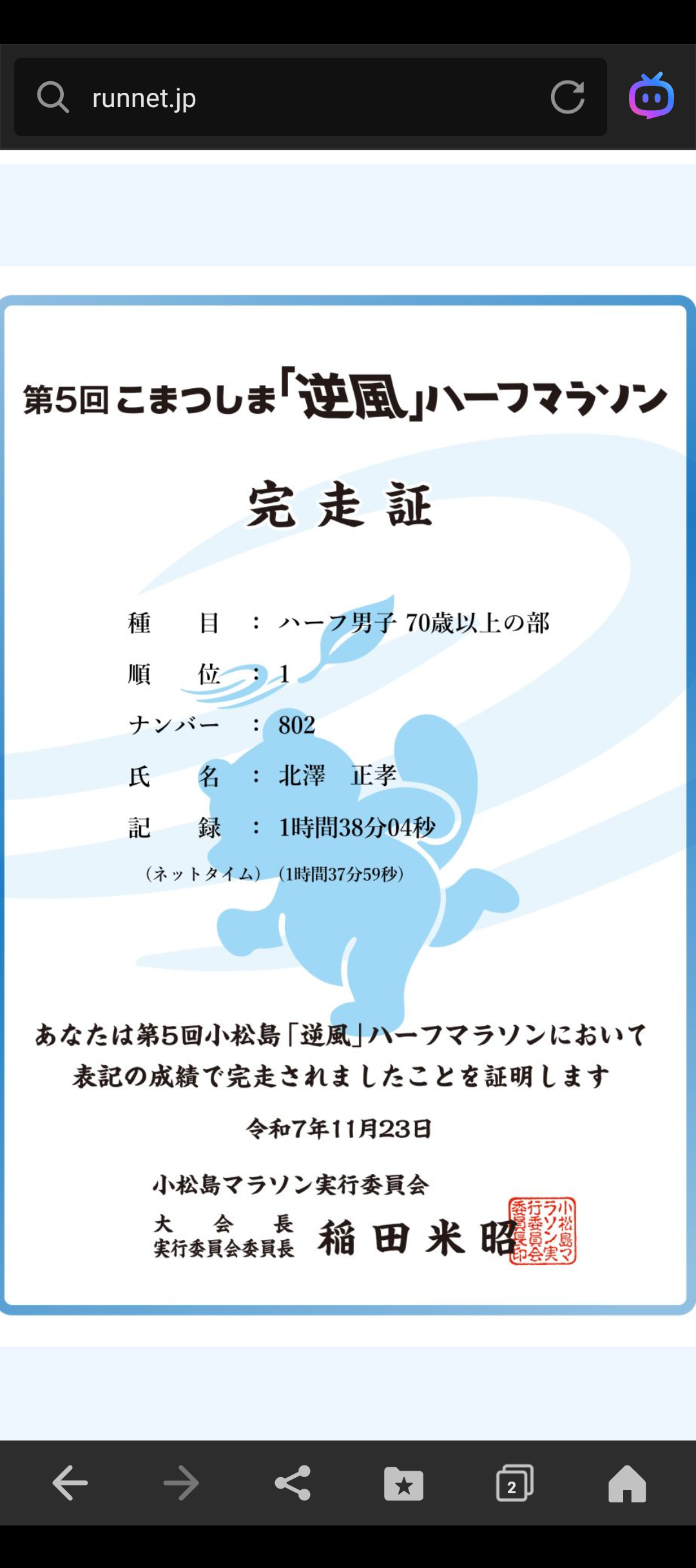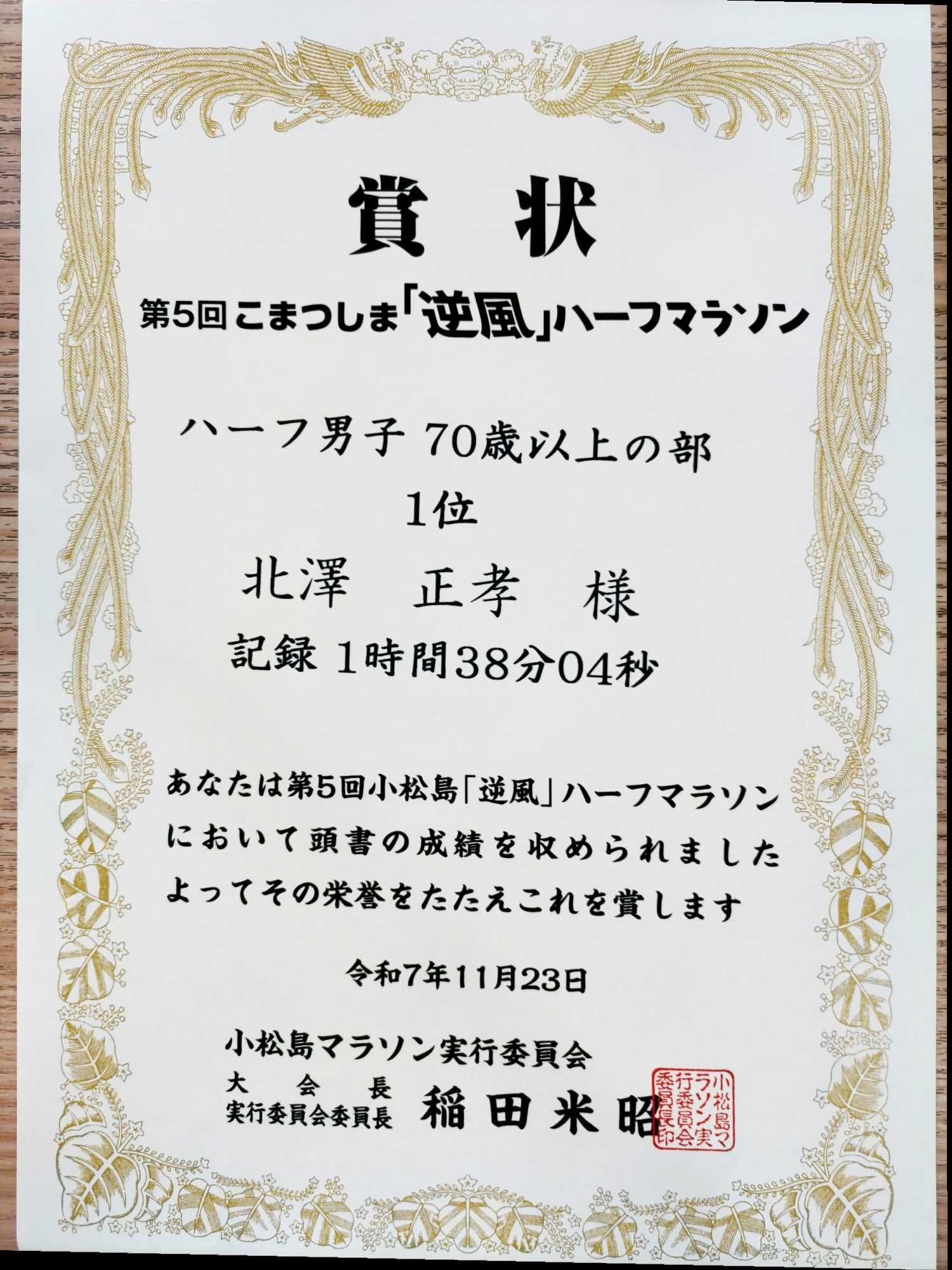 マラソン大会で47都道府県すべてで年代別入賞を達成したランナーです。次の目標は、47都道府県年代別3位入賞です。富山県、徳島県の2県の大会で3位入賞すれば達成です。2つ目の目標はお城マラソンで大名にランクされることです。