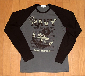 さすがに10月ともなると朝晩は半袖Tじゃ格好悪いですね。というわけで新しくロンTを買い足しました。 【Stimulus】アメカジプリントロンTNAVYのロゴと錨マークに惚れました。写真ではブラック&グレーに見えますがブラウン&グレーです。ほとんど気に入ってるんですが唯一の欠点が首周りの小ささ。頭を入れるときの窮屈さと言ったら・・・(TДT)このStimulusというブランド。お手頃価格なうえに店舗数が全国でも6店舗と少なく非常にワタシ好みです☆