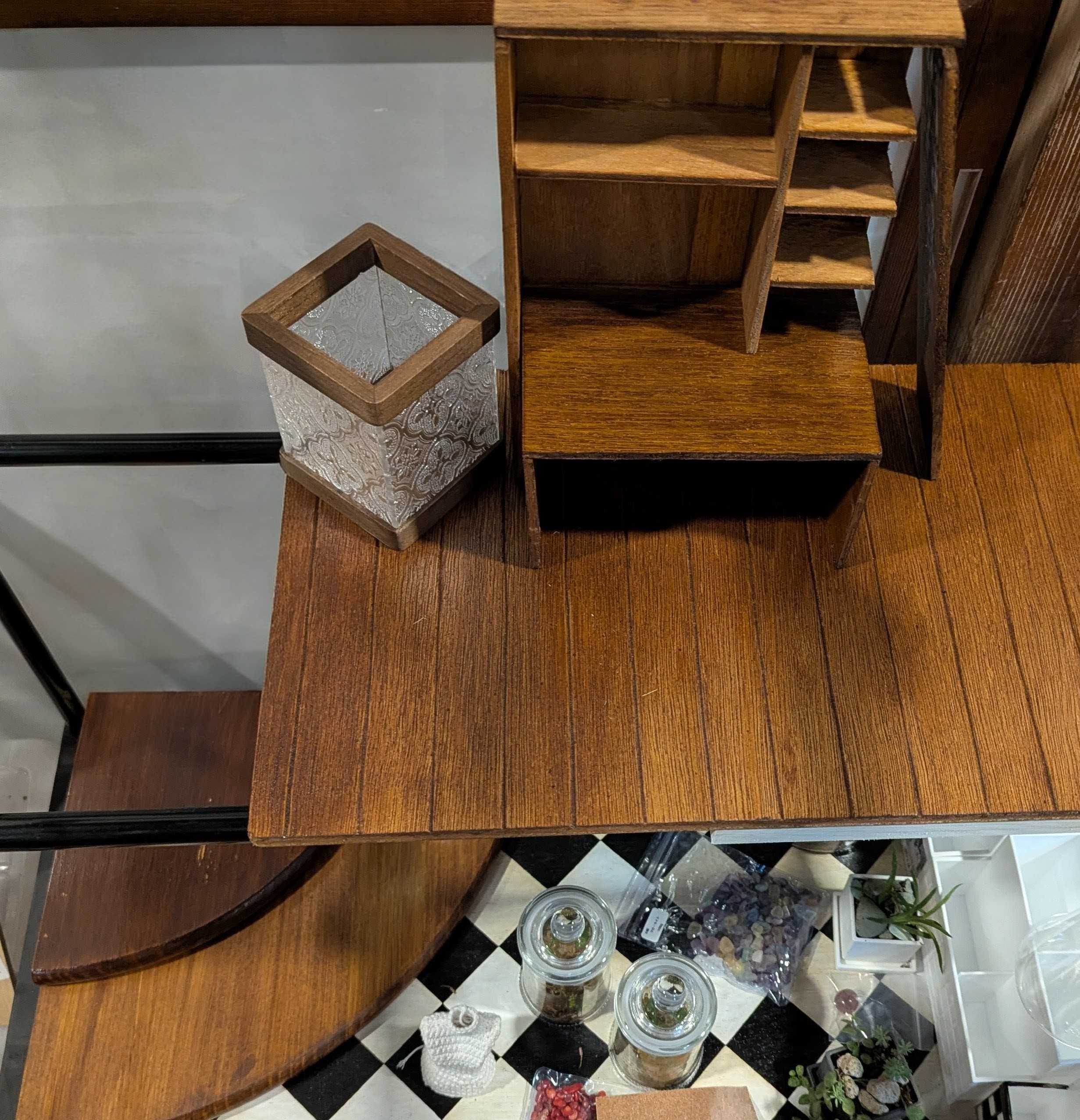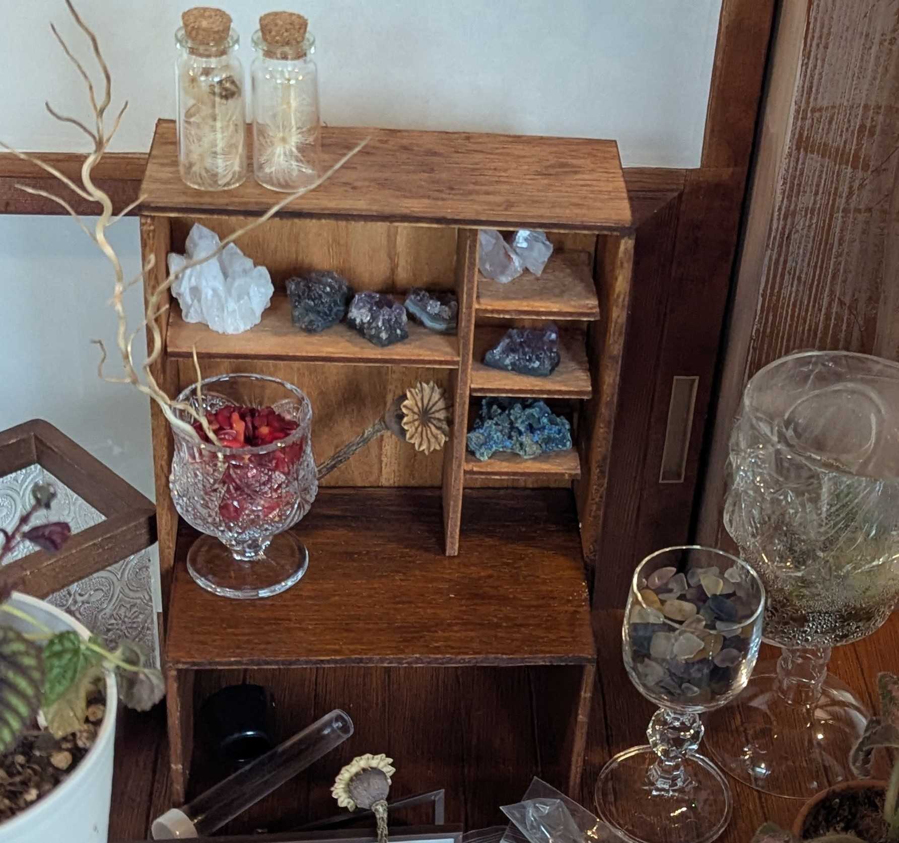 1階、2階共に床が出来たので配置は勿論のこと大事なモノも付けていこうと思う。壁。正直完全に失念していた。なので取り敢えず、防寒対策込みで黒いプラダンを背面にいれるつもりでいる。それと、階段。梯子に近いが、まあこちらは元より作ろうと思っていたのに材料を買っていなかったというか買出し時になかったというか。あとは化粧板というか鉢カバーというか。小物作りは順次進めていこうと思う。箒、緑蛸足ピック、鉢抱えドラゴン、鉢置き魔導書。植物動物各種、を作る予定。因みに計画性は特にない。この前買った鉱石と、我が家産のドライを置いてみた。芥子坊主好きなんだよな。