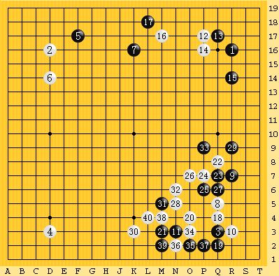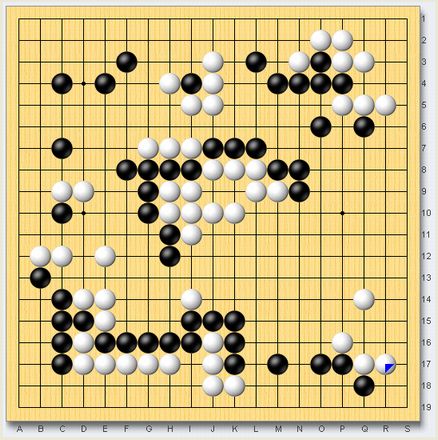 第18期阿含・桐山杯全日本早碁オープン戦2回戦白 山下道吾本因坊 中押し勝ち黒 河成奉アマ第1図 40手まで第2図 41~63手まで第3図 64~76手まで第4図 77~96手まで井山名人・山下本因坊でしか韓国アマを止めることができなかった日本碁界は層の薄さを露呈しました。山下本因坊ご苦労さまでした。