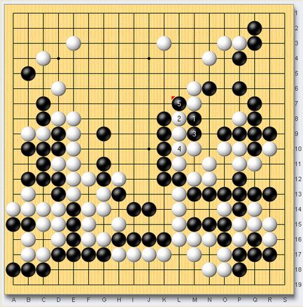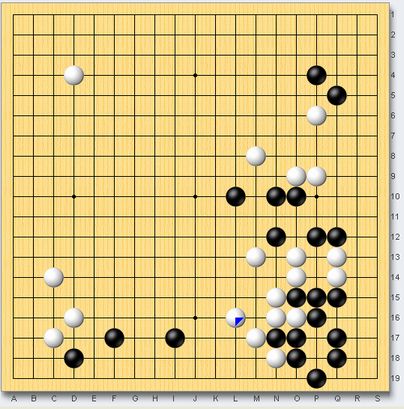 東洋囲碁で2局打ちました。最初は日本人同士、次が中国の方。日本人同士だと大人しい碁になるが大陸の方と打つと必ず食うか食われるかの碁になってしまいます。当然ネタとして面白いのは後者です。実戦の経過1図私の黒です。結果論としては何もしないで普通にヨセて楽勝の局面でした。しかしネットの早碁であるし、開始早々から殴り合いの碁だったので勢いで決めに行ったの局面です。実戦の経過2図切断すれば勝ちだと思っていたのが浅はかでした。反撃されてヤバイの図です。攻めあいは負けそう・・です。実戦の経過3図白1のツギが敗着でした。攻めあいが逆転して私の勝ちになりました。参考図白1のサガリが正解でした。シボラれてマズそうですが・・この後、白一手勝ちになるところでした。もっとも変化が多いので私の負けとは断定できないようです。ま、結局、碁は読みの精度が高い方が勝つんです。序盤や理論の勉強よりも詰碁の勉強です。