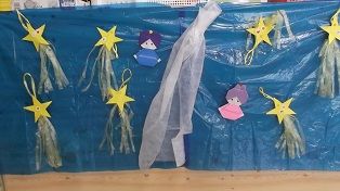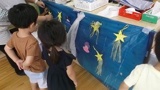 お散歩の後は、天の川がある夜空にお星さまをぺったん