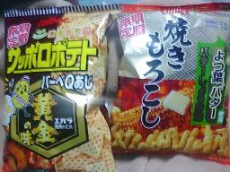 期間限定コラボもの。サッポロポテトバーベキュー・黄金の味と焼もろこし・よつ葉バター 好きなブランドばっかりなので、私にとって夢のコラボかも。まだ焼もろこし・よつ葉バターしか食べて無いけど、独特のサクサクのコーンスナックにバターの香りって最高。黄金の味も期待しつつ、そのうちー。