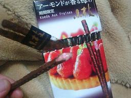 友人Mが明日来るので、片付けないと…と思いつつあまりはかどら無かったので「あかずの間」を作る事にして妥協(爆)何の事は無く、寝室にいらんもんぶち込む作戦見得張っても意味無い相手なので、作戦に早々に承認貰ったりして。そそ、またもや期間限定苺モノ発見。森永アーモンドが香るいちごの小枝 パッケージの通り、苺タルトをイメージしてるらしい。2本ずつの個別包装になってるので、ちょっとだけ食べたい時にも良いかな。封を開けた瞬間の甘酸っぱい苺の香りで期待が高まっちゃう事請け合いミルクチョコレートでコーティングされた苺の酸味が広がるチョコに、小枝らしいパキパキした食感が実に合ってると思う。アーモンドの使い方も流石だわー。…って和んでる時間有ったら掃除出来たんじゃ?Σ(`∀´ノ)ノ アウッ3日で運がよくなる「そうじ力」文庫本の威力はさほど無かったらしい。文庫だからじゃなく読み手に問題有り(笑)