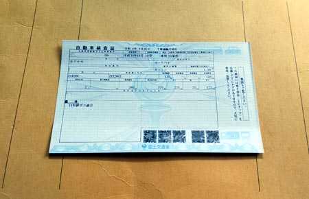 それと、従来、運輸支局で「継続検査申請書」「自動車重量税納付書」「自動車検査票」の3枚の書類を手書きで記入して提出しないといけなかったのですが、なんとこれを自動的に記入されたものをプリントアウトされる機械が配備されていました。これは便利! 代書屋さんは商売上がったりですね。