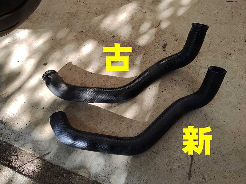 新旧の比較。極端に膨れたりはしていませんが、新車購入以来20年交換していないのでやっておきます。