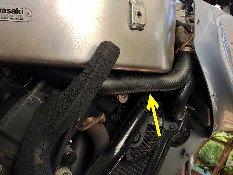 交換終了。矢印が交換したホースです。