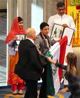 平和賞マララさん演説 ノルウェーのオスロ市庁舎では、教育の重要性を訴えてきたパキスタン出身のマララ・ユスフザイさん(17)とインドのカイラシュ・サティアルティ氏(60)が平和賞を受賞した。 平和賞の授賞式では、ノーベル賞史上最年少の受賞となったマララさんが受賞演説で、「すべての子供が学校に行けるようになるまで、私は闘い続けます」などと語り、教育の充実を世界に訴えた。 マララさんは、女子教育を否定するパキスタンの武装勢力に銃撃され重体に陥った体験を振り返り、「不正義や権利が否定されることを傍観することはできない」と強調した。 また、世界では軍備拡大を進める国がある一方で、学校建設は進まない現状を指摘。各国政府に具体的な行動目標として、「すべての子供に対する質の高い初等・中等教育の無料提供を」と求めた。 一方、インドで労働を強いられてきた子供約8万人を救出してきたサティアルティ氏は、「子供たちの夢を否定することほど、ひどい暴力はない」と訴えた。 賞金800万スウェーデン・クローナ(約1億2700万円)は、2人に均等に分けて贈られる。日本語訳全文コチラ