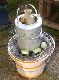 「七輪生活」の続き。 七輪でご飯を炊いてみた。お米と水は1対1の割合。お米は水につけておくこと。 飯ごうの中の水分がなくなったら飯ごうを火から下ろしひっくり返して10分間むらすとできあがる。 ご飯を炊くついでに日本酒の燗をつけてみた。 アウトドアセットについていたヤカンでお燗。これまたちょうどいい。 飯ごうの脇にあるのは、長ネギのぶつ切り。 長ネギって、ただ焼いただけで甘みが出ておいしいのだ。楽天ブログランキング←クリックしてください 楽天会員以外の方のコメントは「輾転反側掲示板」へどうぞ。