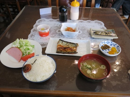 帰省の途中に一泊した。 建物は新しくはないが清潔にしてある。 面白いのは、浴衣を自分で選ぶこと。 廊下に見本がつるしてあり、自分に合うサイズを選んで持って行く。 温泉があるというのだが、裏手にある温泉施設を利用する。数分歩く。 ホテル内にも温泉があるそうだが、そちらは利用しなかった。 一人旅なのだが、ツインルームの一人利用。 有線LANが使える。 下の写真は朝食。 おいしかったので、ついつい三膳も食べてしまった。 楽天会員以外の方のコメントは「輾転反側掲示板」へ