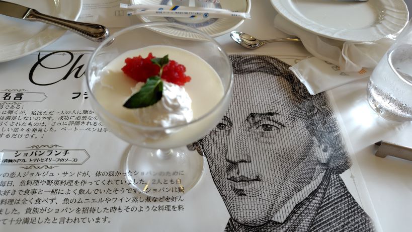 昨日の続き。 今回のメインは「河口湖音楽と森の美術館」でコース料理を食べること。 肉か魚を選べるので、妻と別々の料理を頼んでみた。 サラダから一つずつ運ばれてくるので、雰囲気はあるが時間はかかる。ピアノの生演奏が聴けるが、朝ドラの主題歌だったり、鬼滅の刃だったりして、ピアニストの工夫が感じられた。 コースは団体客向けのもので、ここにメニューがある。 一番安いコースだったのだが、ちゃんとしたものだった。 コース名がクラシック音楽家名になっていて、一番高いのがバッハ。 それは意義がないが、その後のランキングは、人によっていろいろ評価が分かれるところだろう。 コースによって、写真のような紙のランチョンマットが敷いてあり、料理を待つ間に作曲家の事跡を知ることができる。 オルゴール演奏などいろいろ時間ごとにイベントがあるのだが、滞在時間二時間でも、食事に一時間かけるので、オペラだけ見ることができた。 声楽家と進行役がコミカルな掛け合いで歌や自動演奏を聴かせる。 オペラは聴いてもわからないが、「フニクラフニクラ」をコミカルに聞かせたりする。 それにしても、声楽家というのは、なにをどうやったらあんな声が出るのか不思議だ。 オペラの後で見たからくり人形。 こういうのは日本にもあるが、感性が違う。 広い施設ではないのだが、ここはもっと時間をかけてじっくり楽しみたい施設だった。 ドラスを着られるプリンセス体験もある。 子供用のドレスもあるので、娘がいたら着せてみたくなるだろう。 着ている若い女性もいた。 開国からの旅行者はあまりいなかったが、日本に来てフランス風のものを見ようとは思わないのだろう。