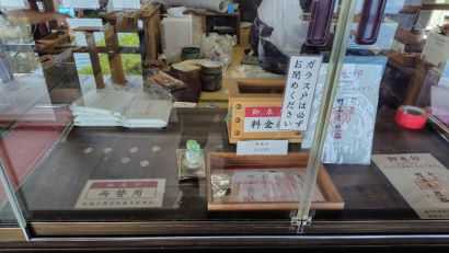 竹生島は、行ってみてびっくりで、急斜面に神社があるのだった。 かわらけ投げのできる地区節な神社には御朱印があったが、写真のように、セルフサービス方式。 コゼニがない場合に備えて、両替用の百円玉も用意してあった。 島には売店もあり、ゆっくり休むことができる。